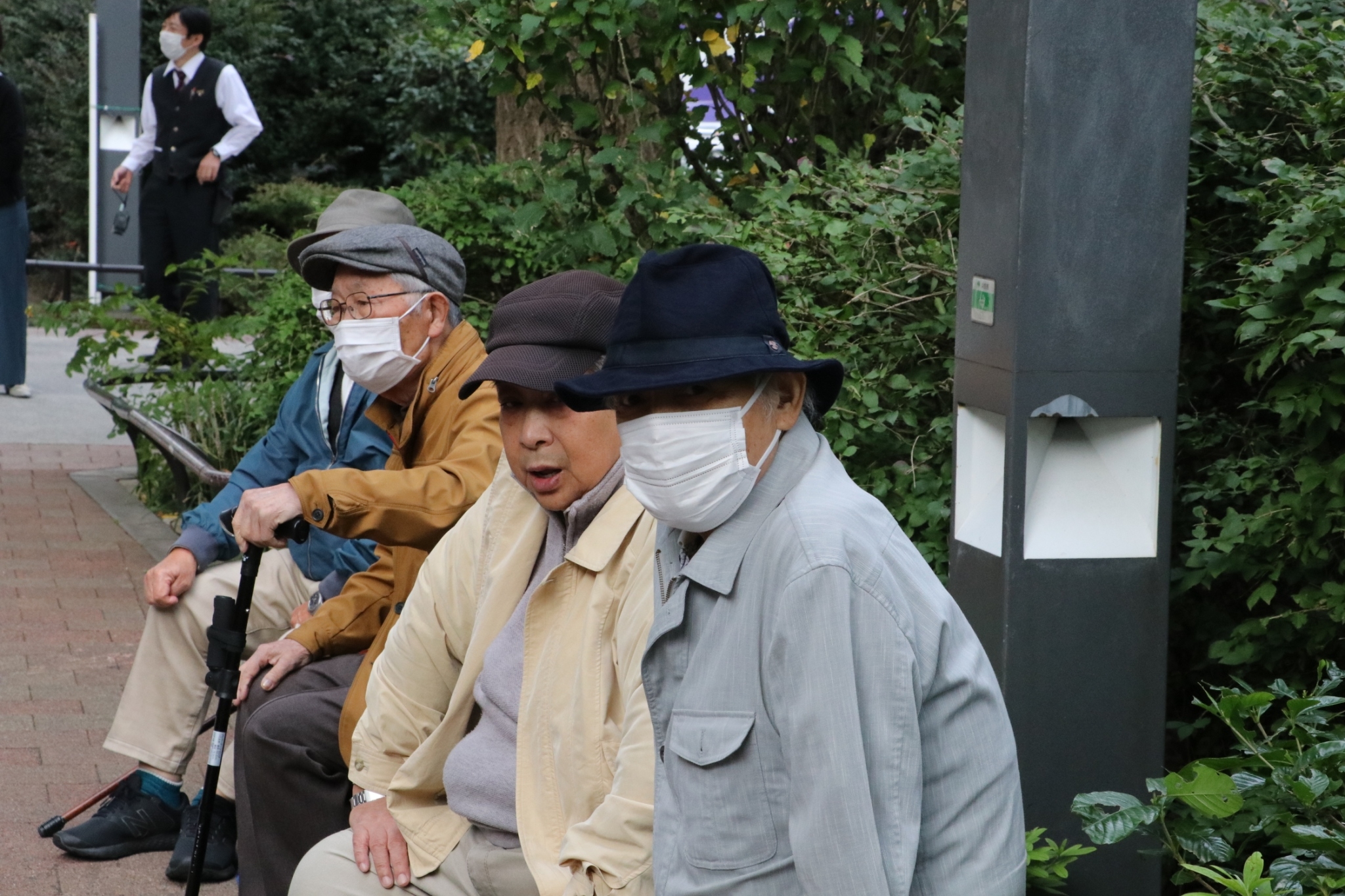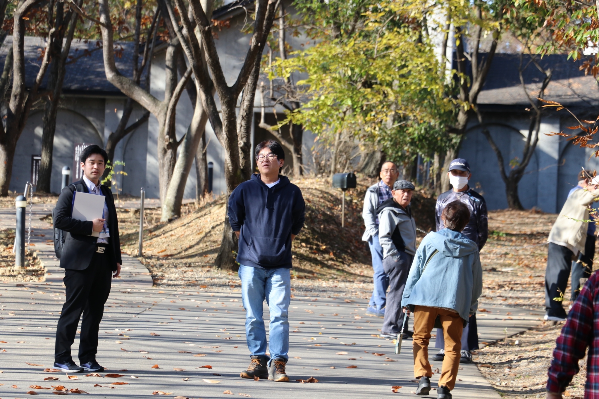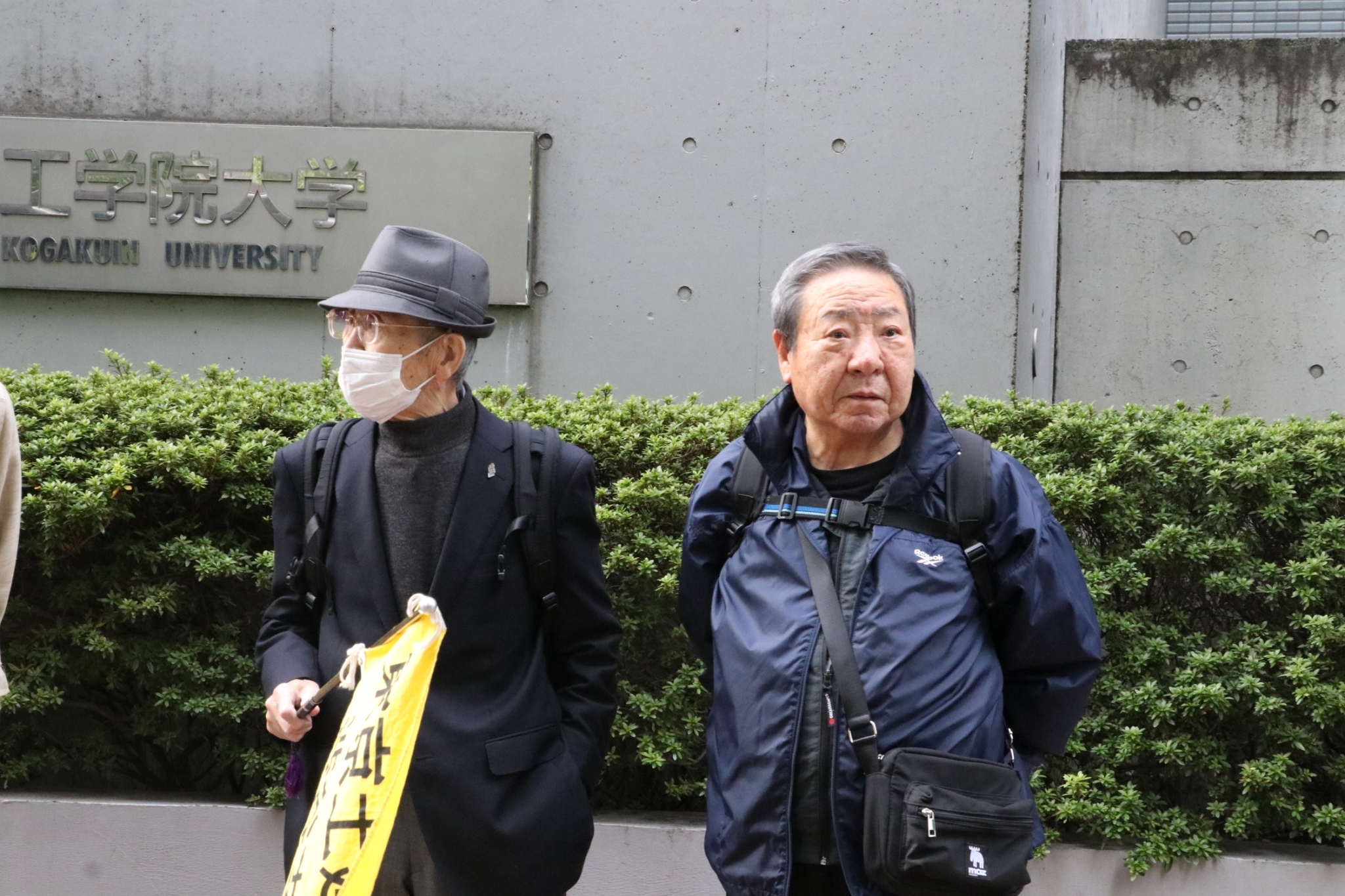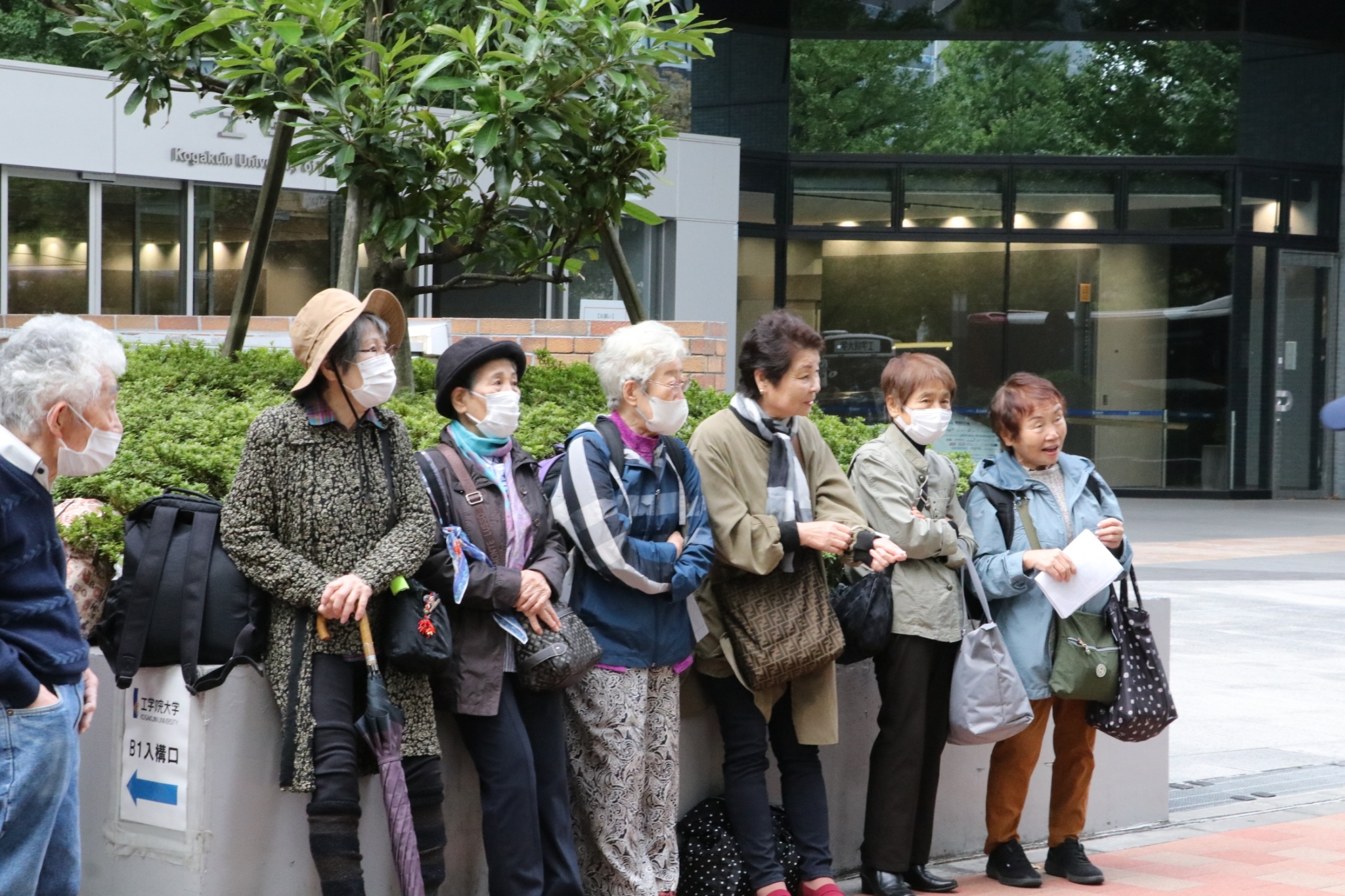 7時10分、シニアの旗やカメラを担いで集合場所の新宿工学院前に到着。7時半集合8時出発の予定でしたが、ほとんどの方がお揃いでした。中には6時半から待っている方も。