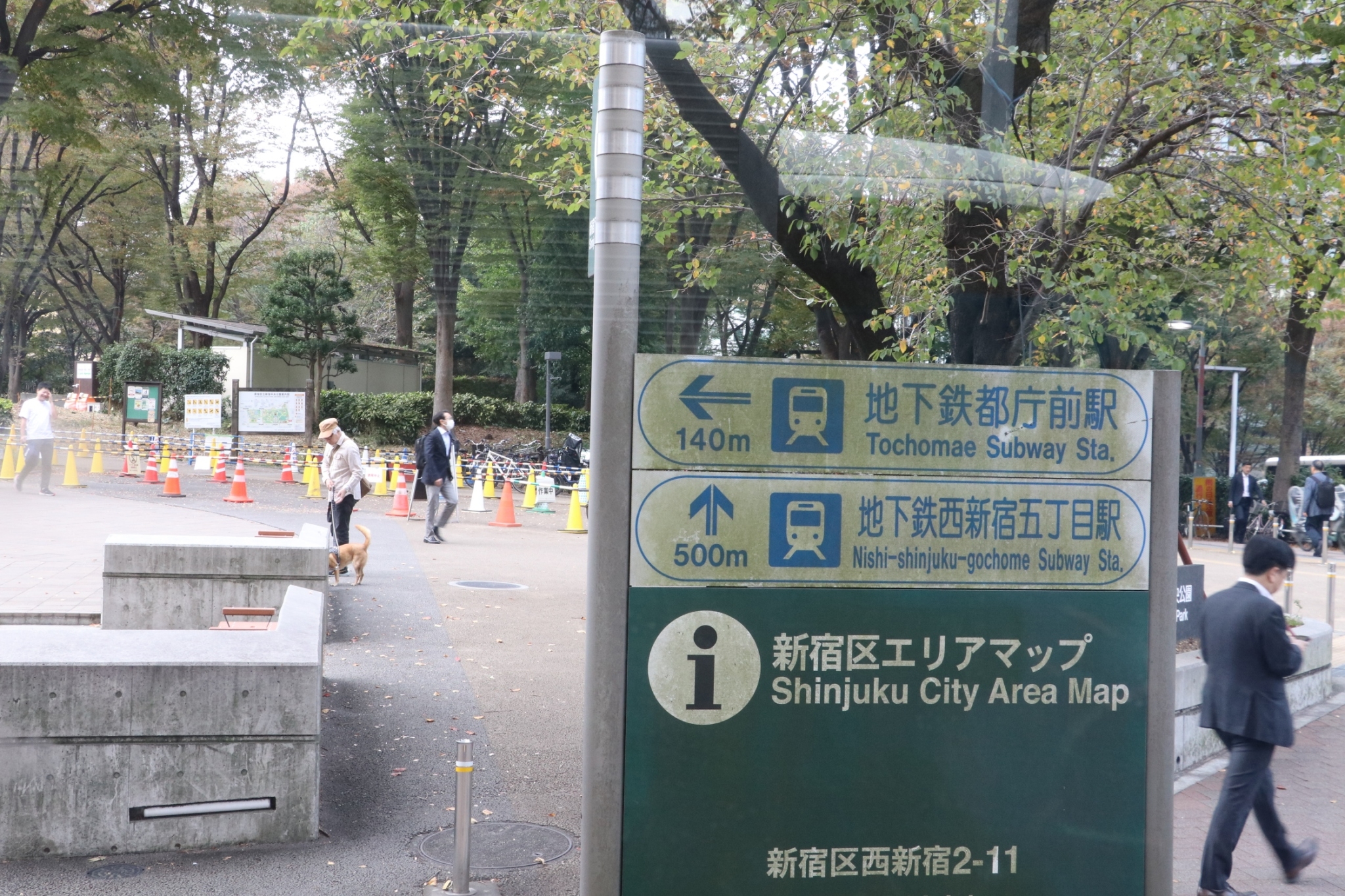 バスを走らせること数分、最初のトイレ休憩場所は新宿中央公園でした。