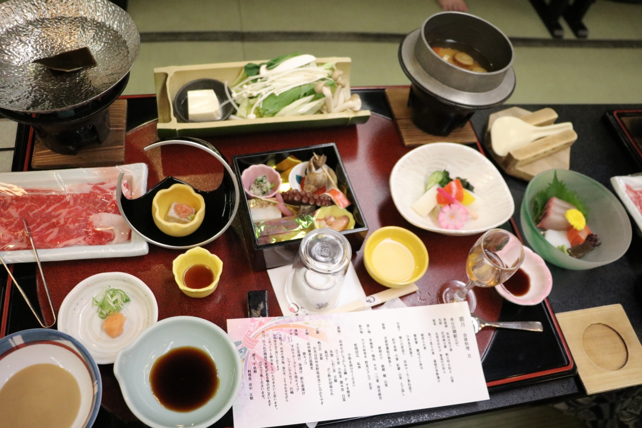 気を取り直して温泉に入り、部屋ビールで乾杯の練習をして、宴会です。