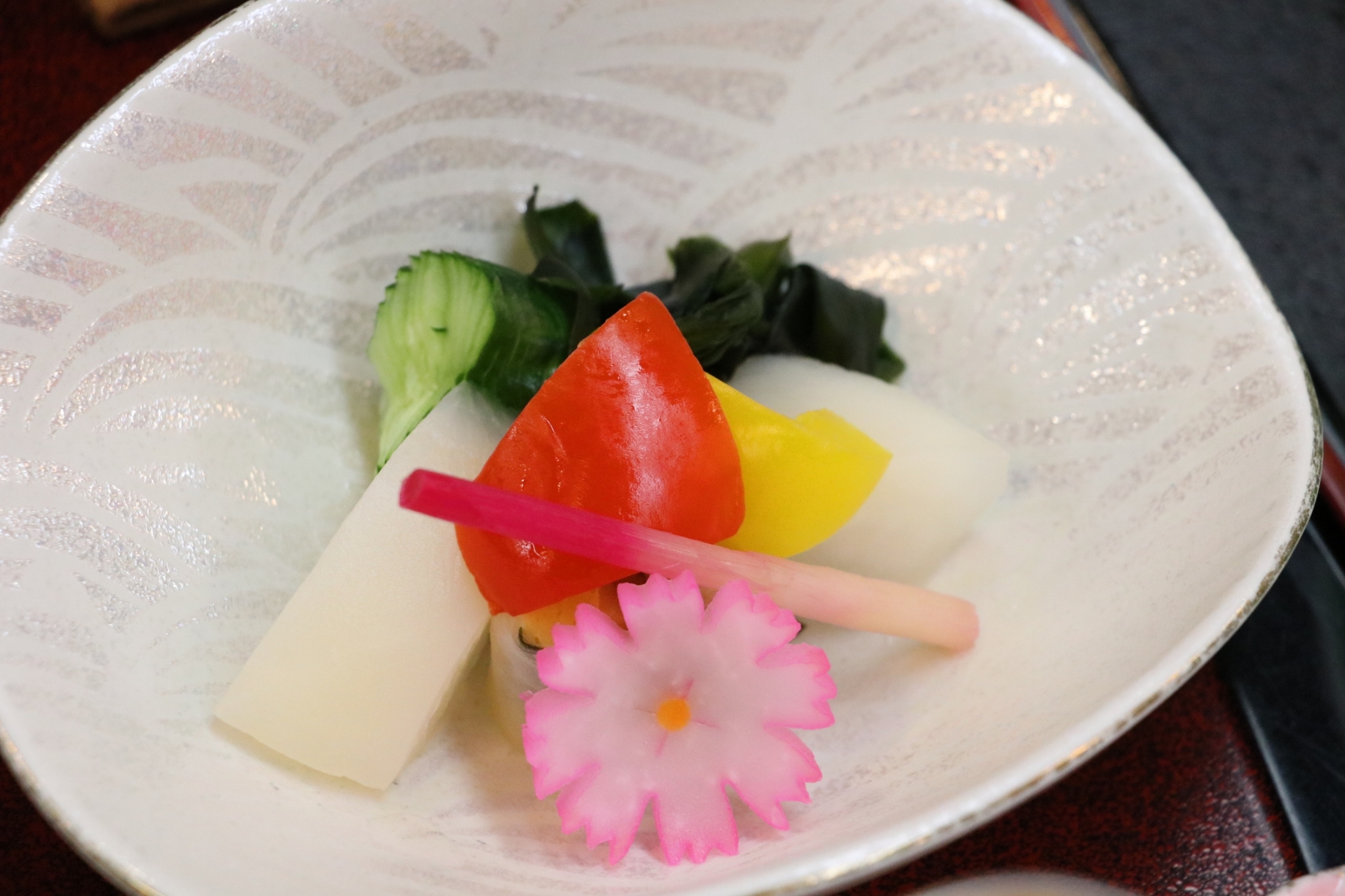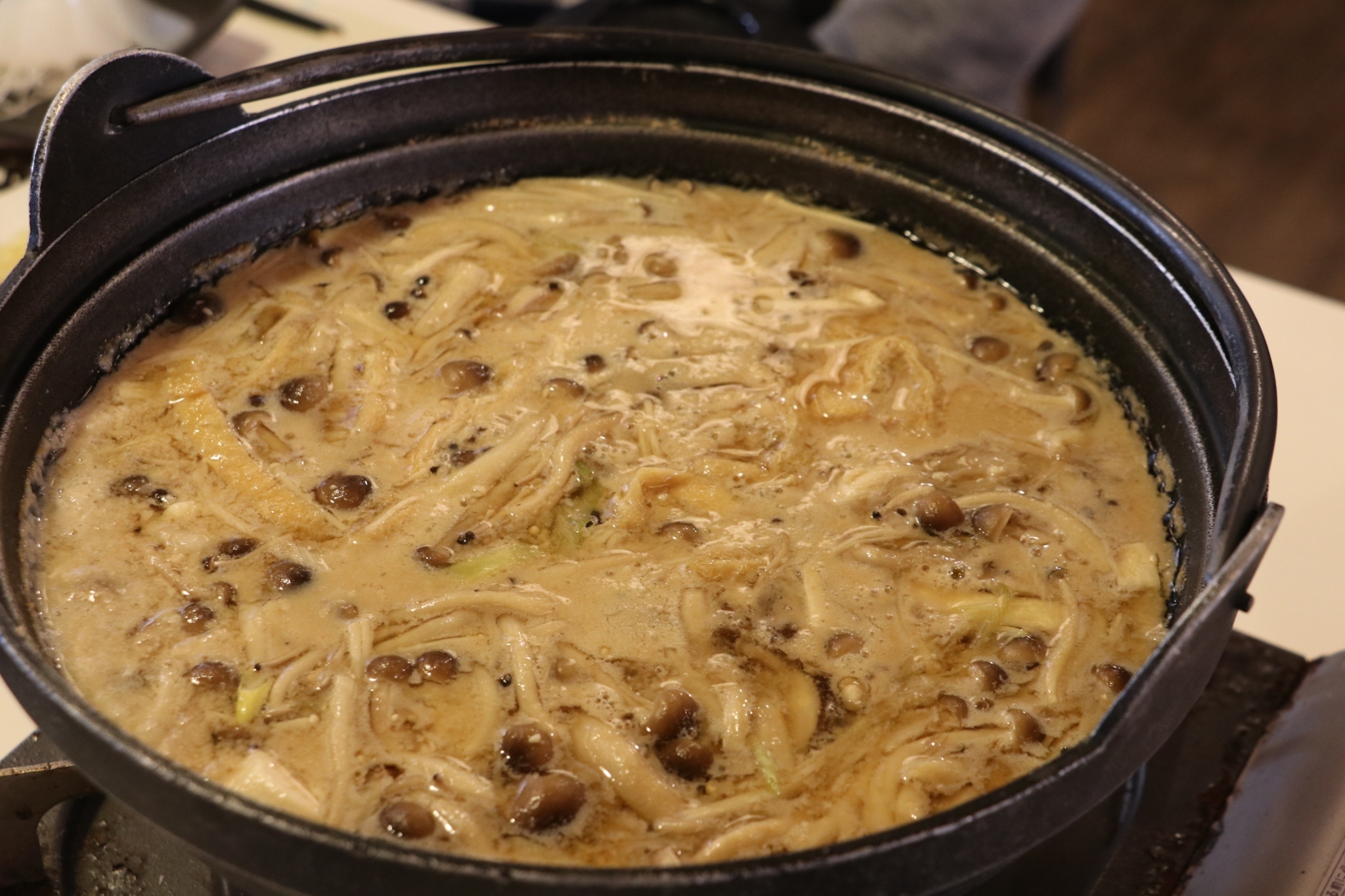 精進料理かと思っていたらキノコ汁に豚肉が入っていました。自宅へ帰ってから真似をして作ったほど、とても美味しかったです。