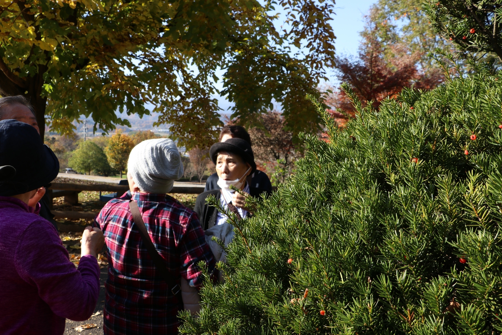 組合員さんから「これは食べられるよ、子どもの頃によく食べたよ」と教えてもらい、皆で実を食べました。種はとても苦いですが、実はほのかに甘く懐かしい味でした。