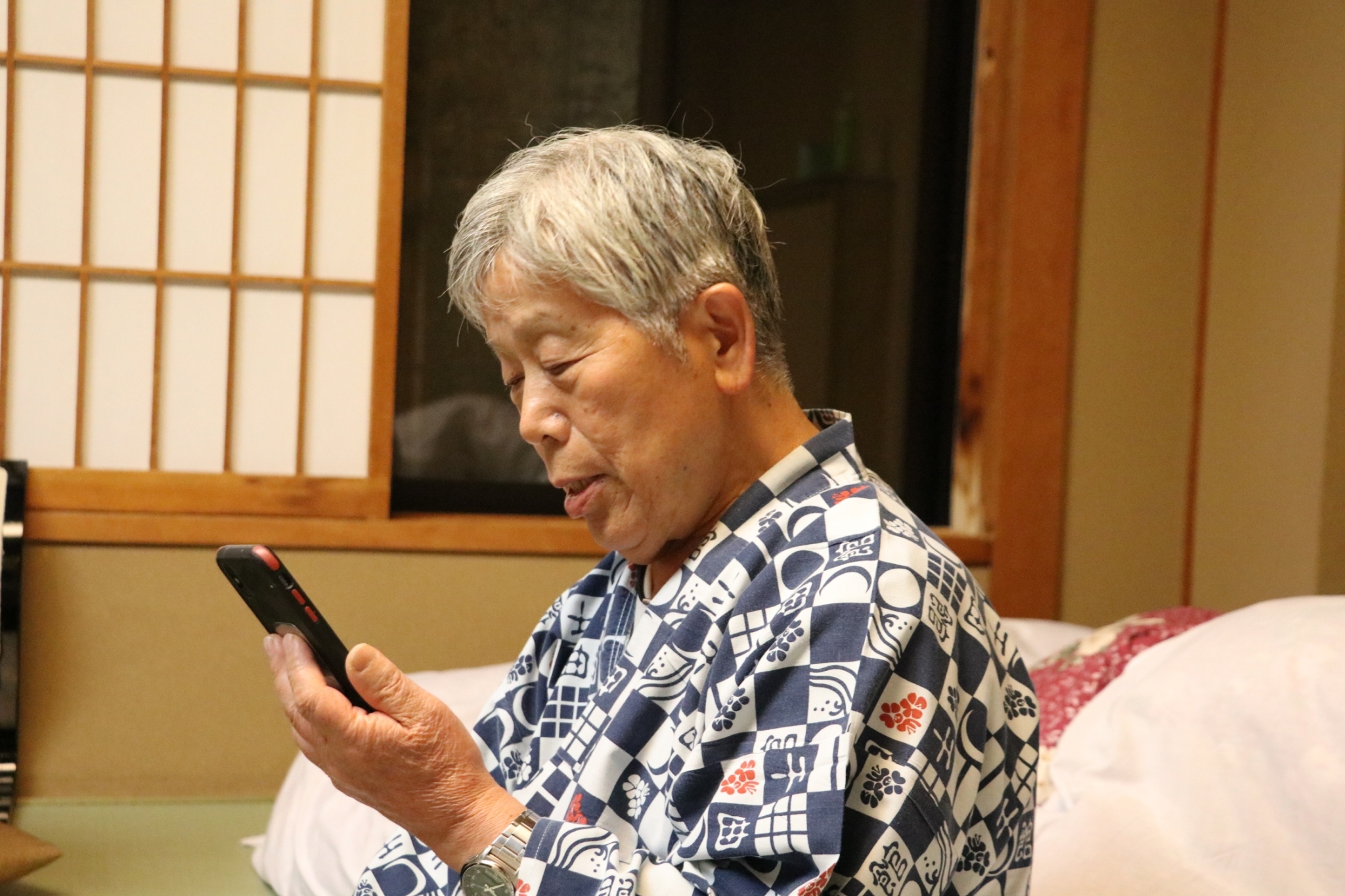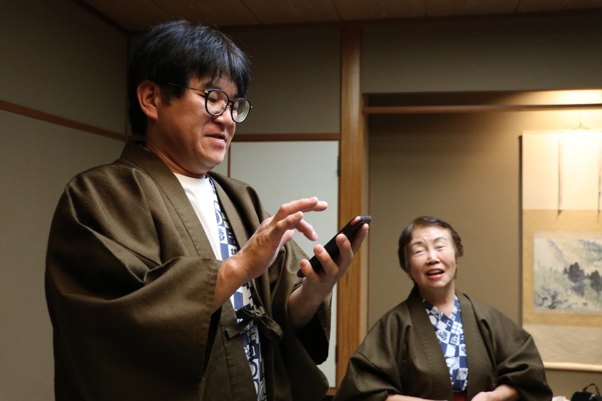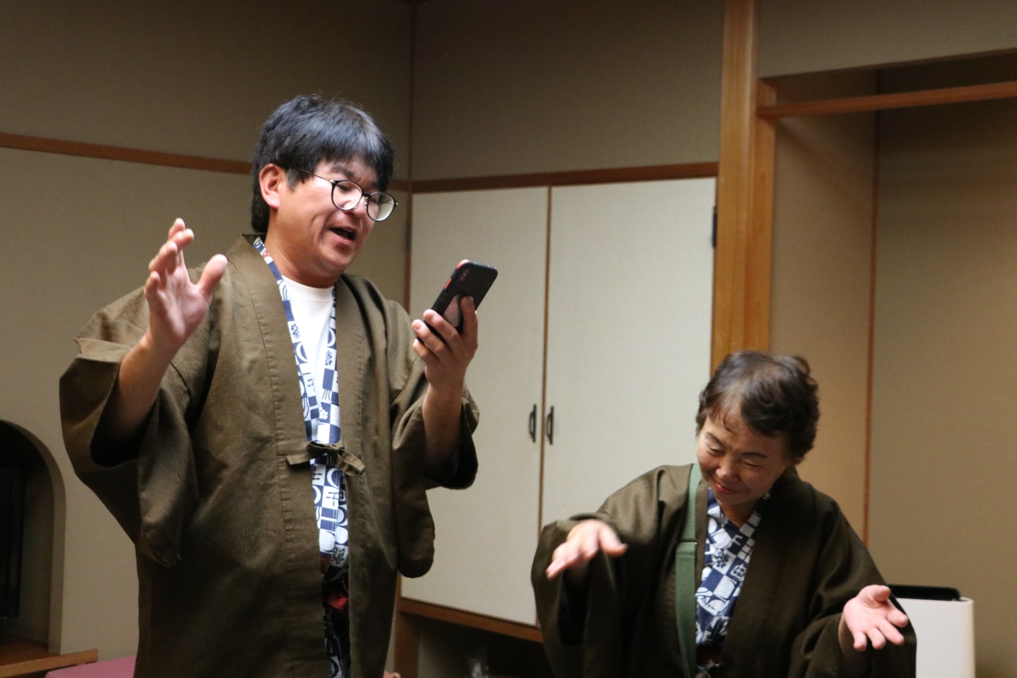 小倉委員長がケータイを駆使し、さらにアカペラでカラオケ大会。