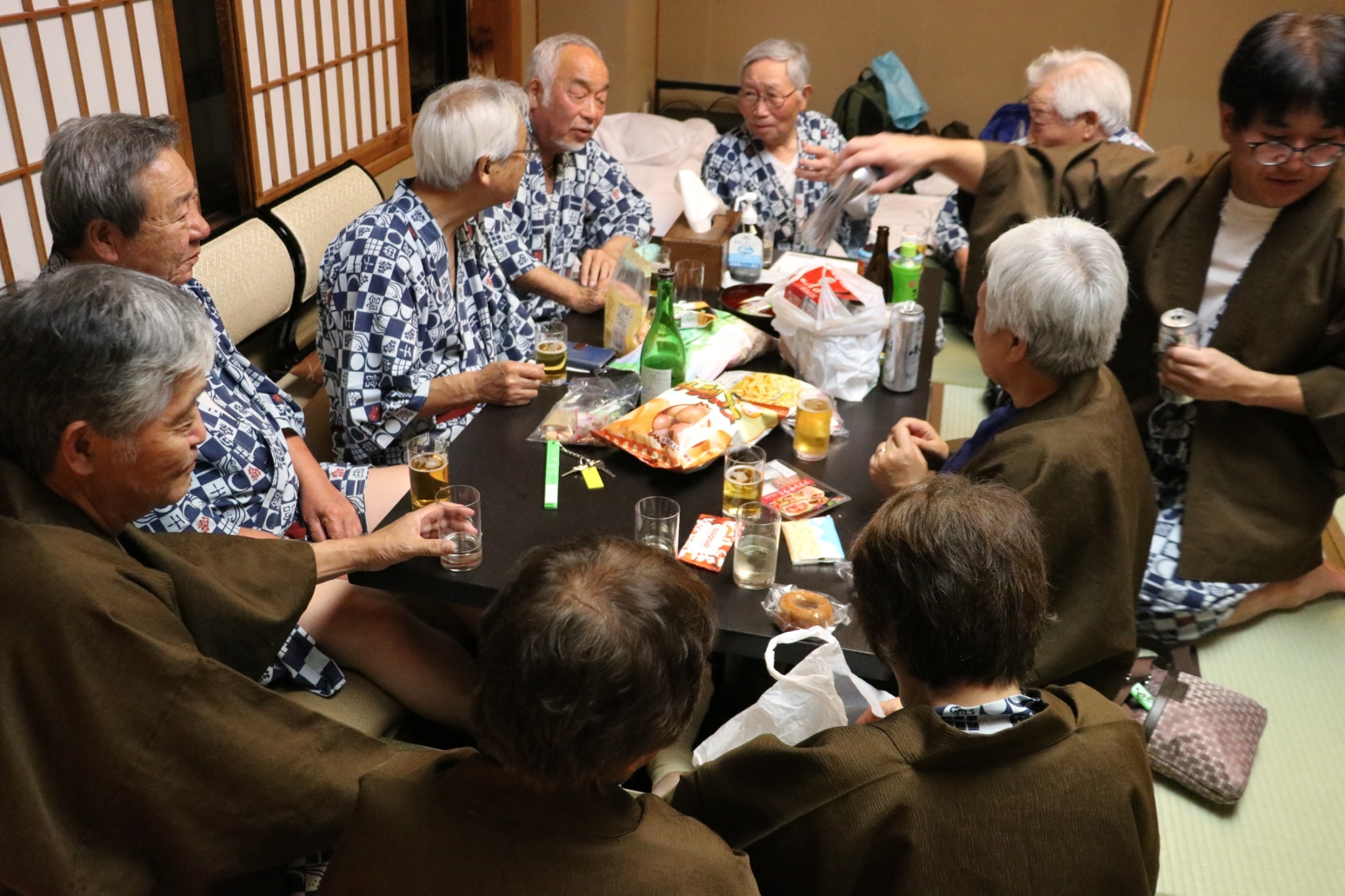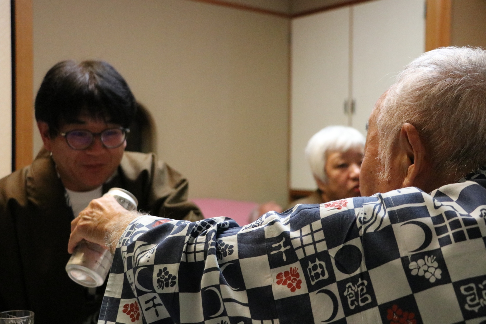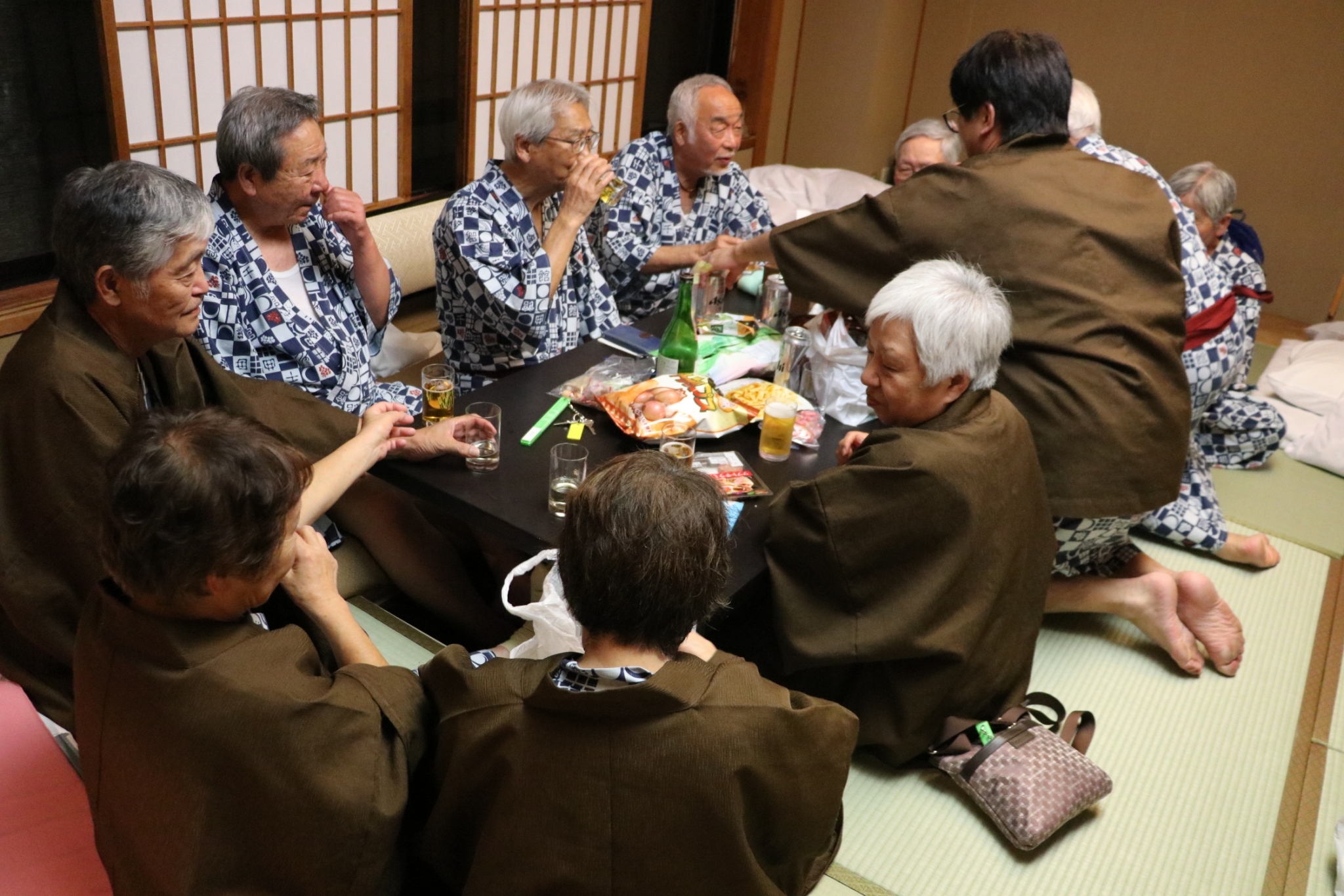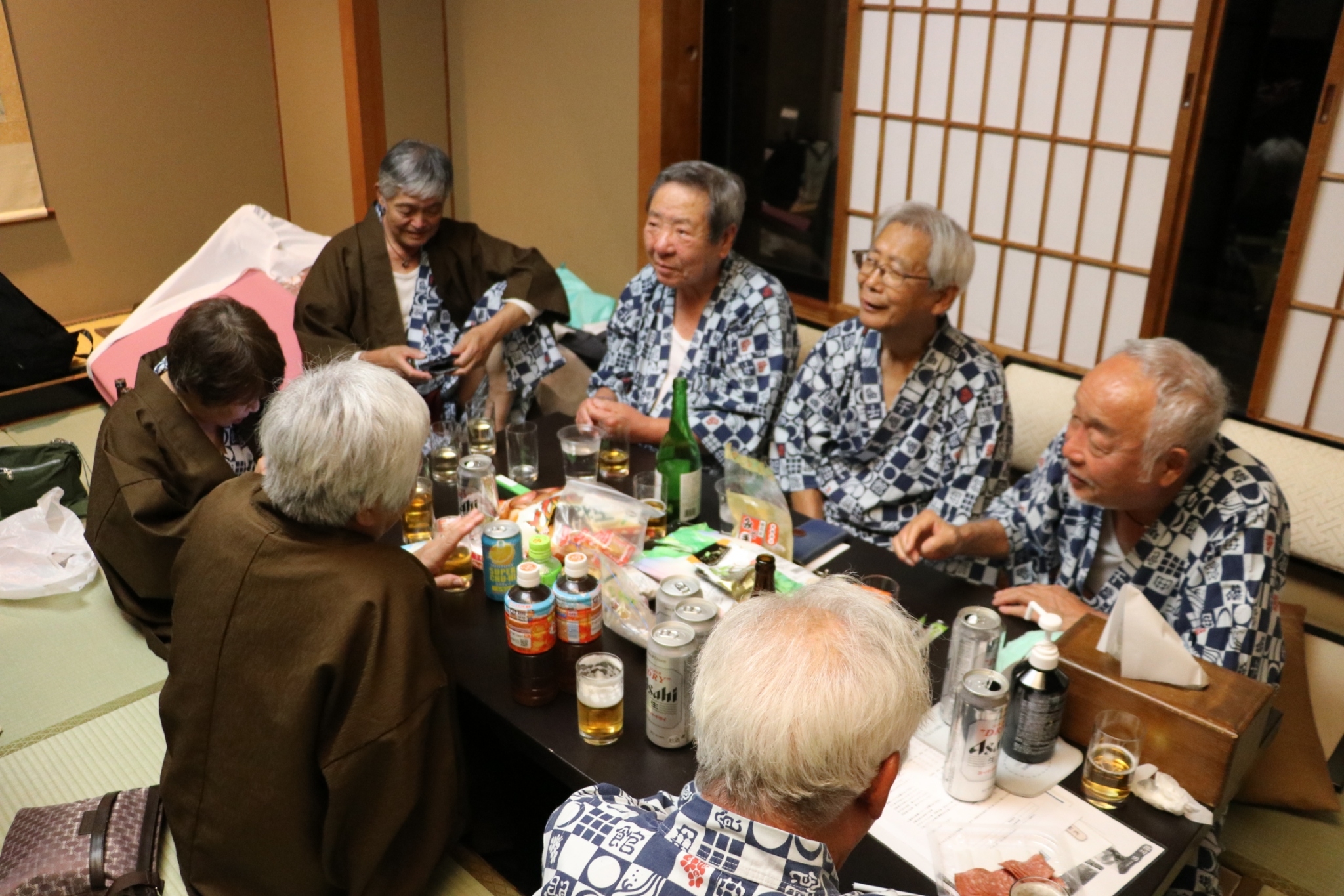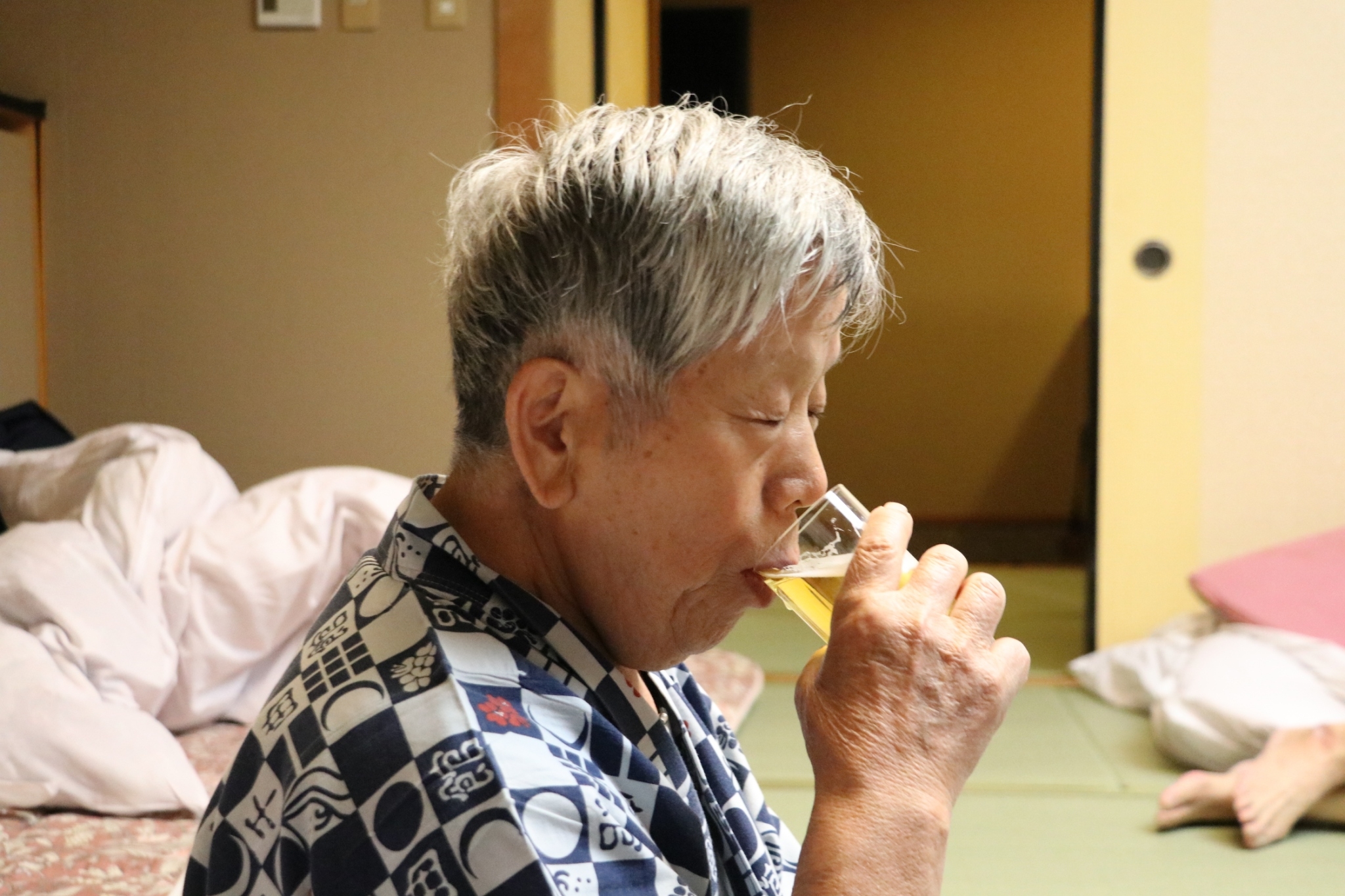 皆さん早朝からビール・日本酒・焼酎をご所望。朝酒健康法を実践していました。
