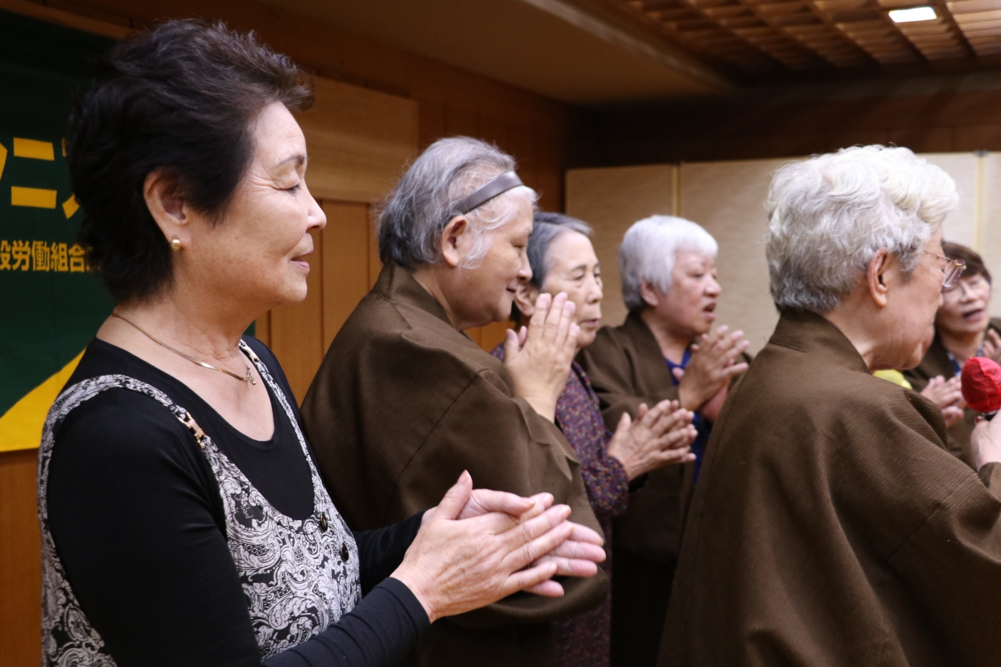 こんなに悲しい表情の組合員さんを初めて見ました。戦後何十年経っても人の心を苦しめ悲しませる戦争を、絶対に許さない、と思いました。