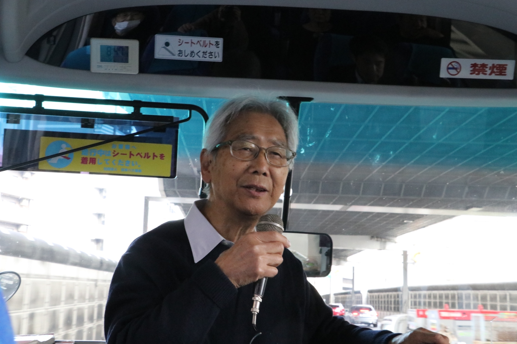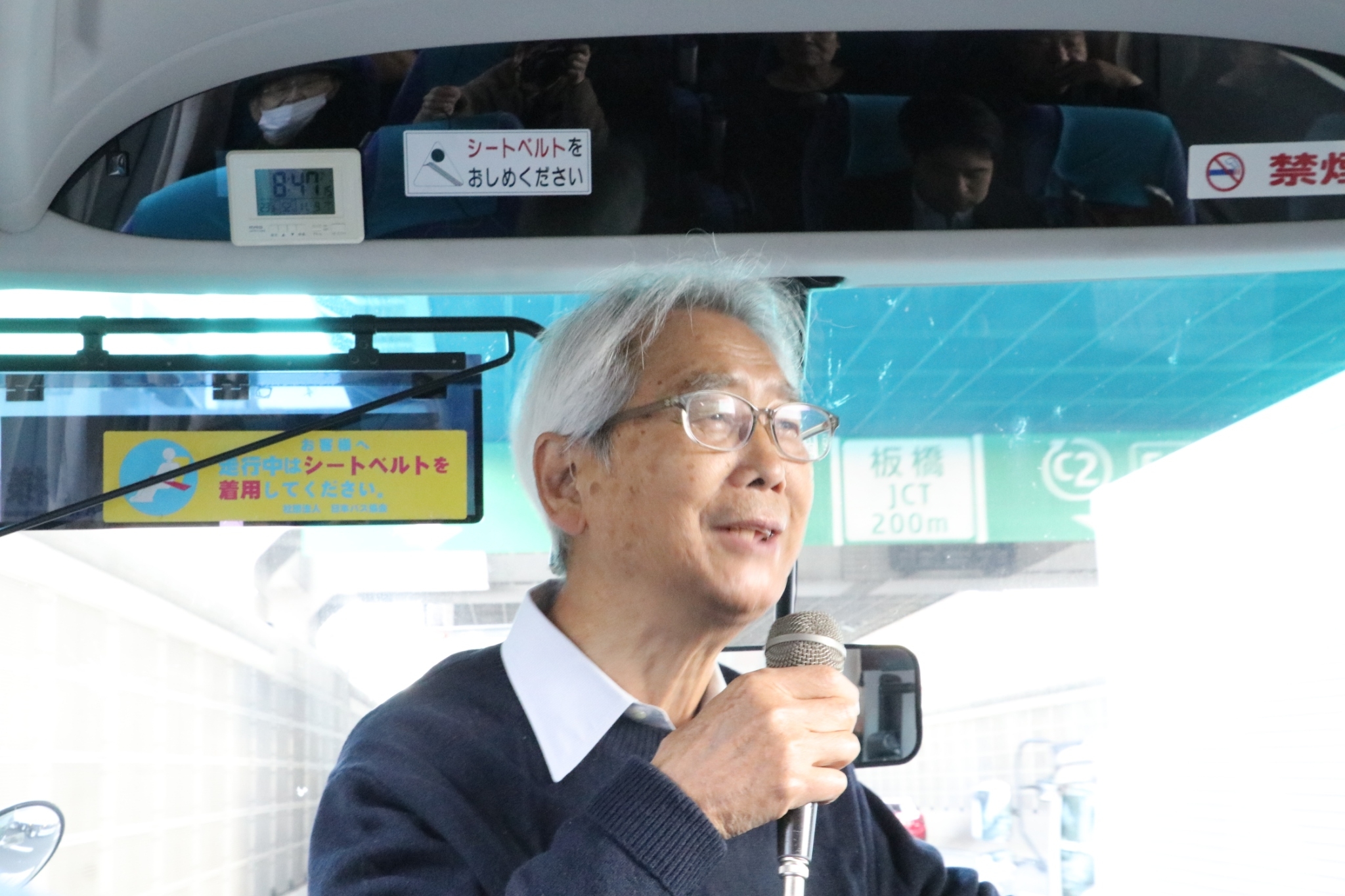7時20分、小倉委員長が到着し全員集合。珍しくバスの到着が遅れ、8時30分、長野県に向け出発です。