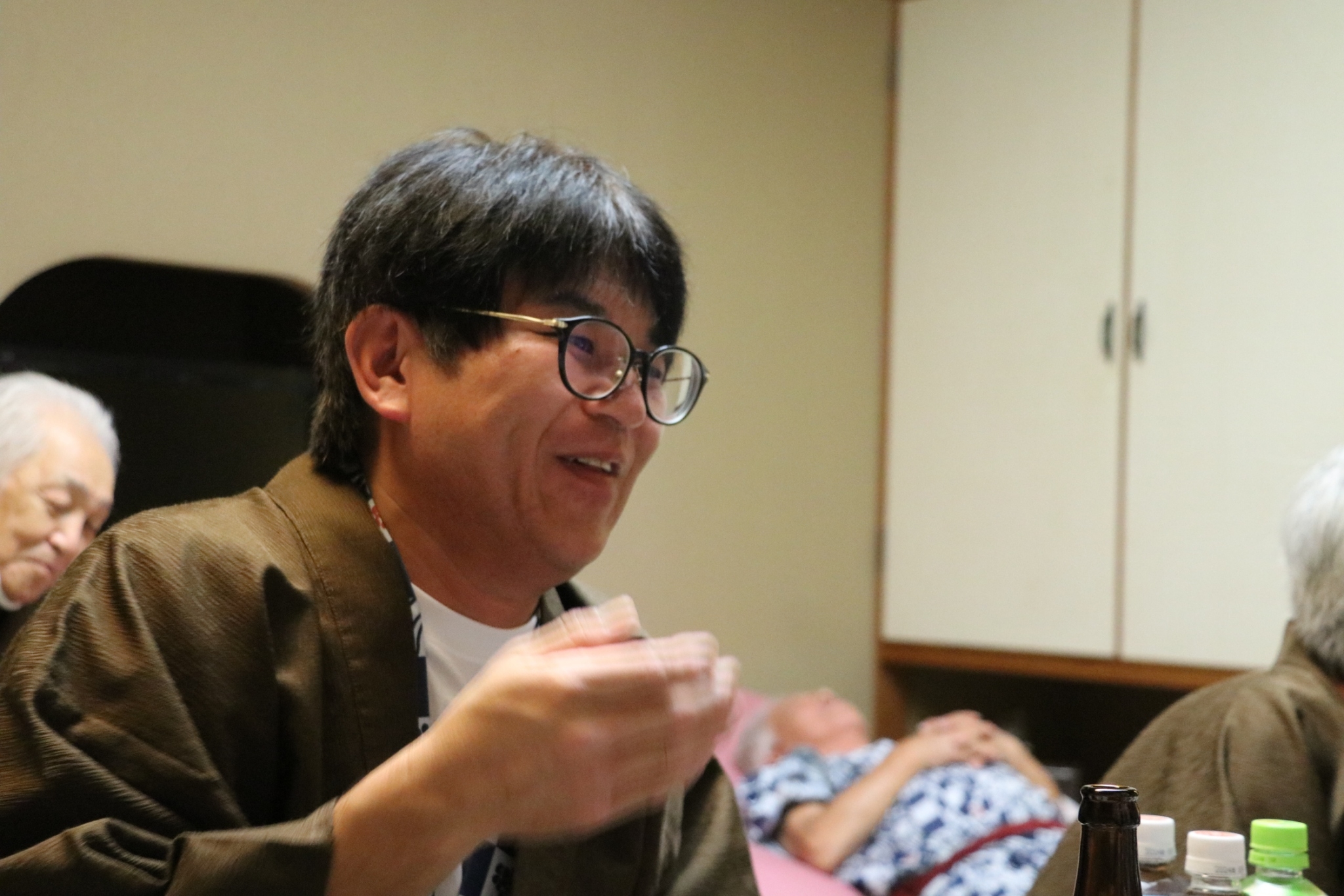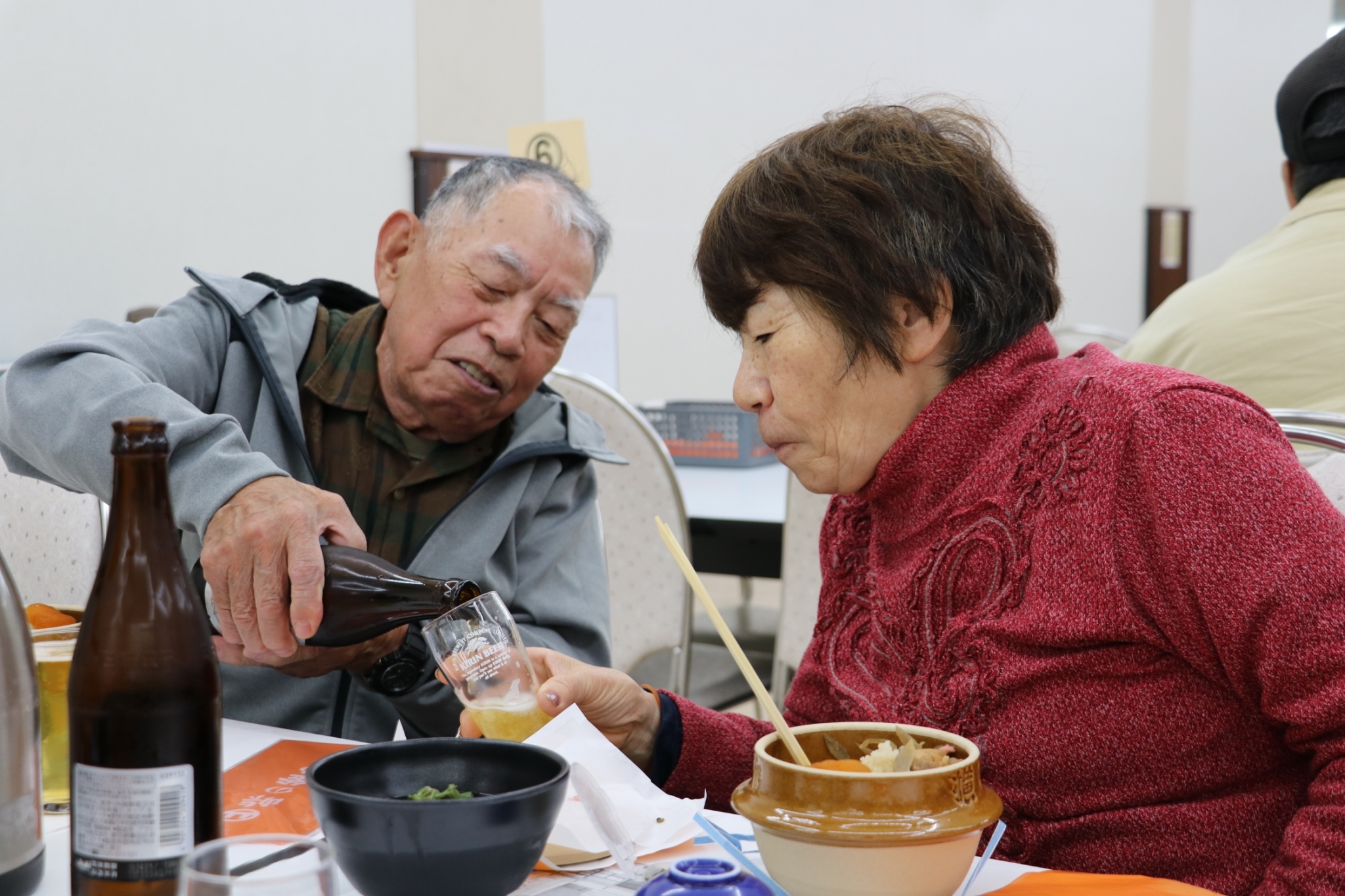 役員さんが、酒飲みの好みを知り尽くしたおつまみセットを作ってくれていました。隣の組合員さんも嬉しそう。