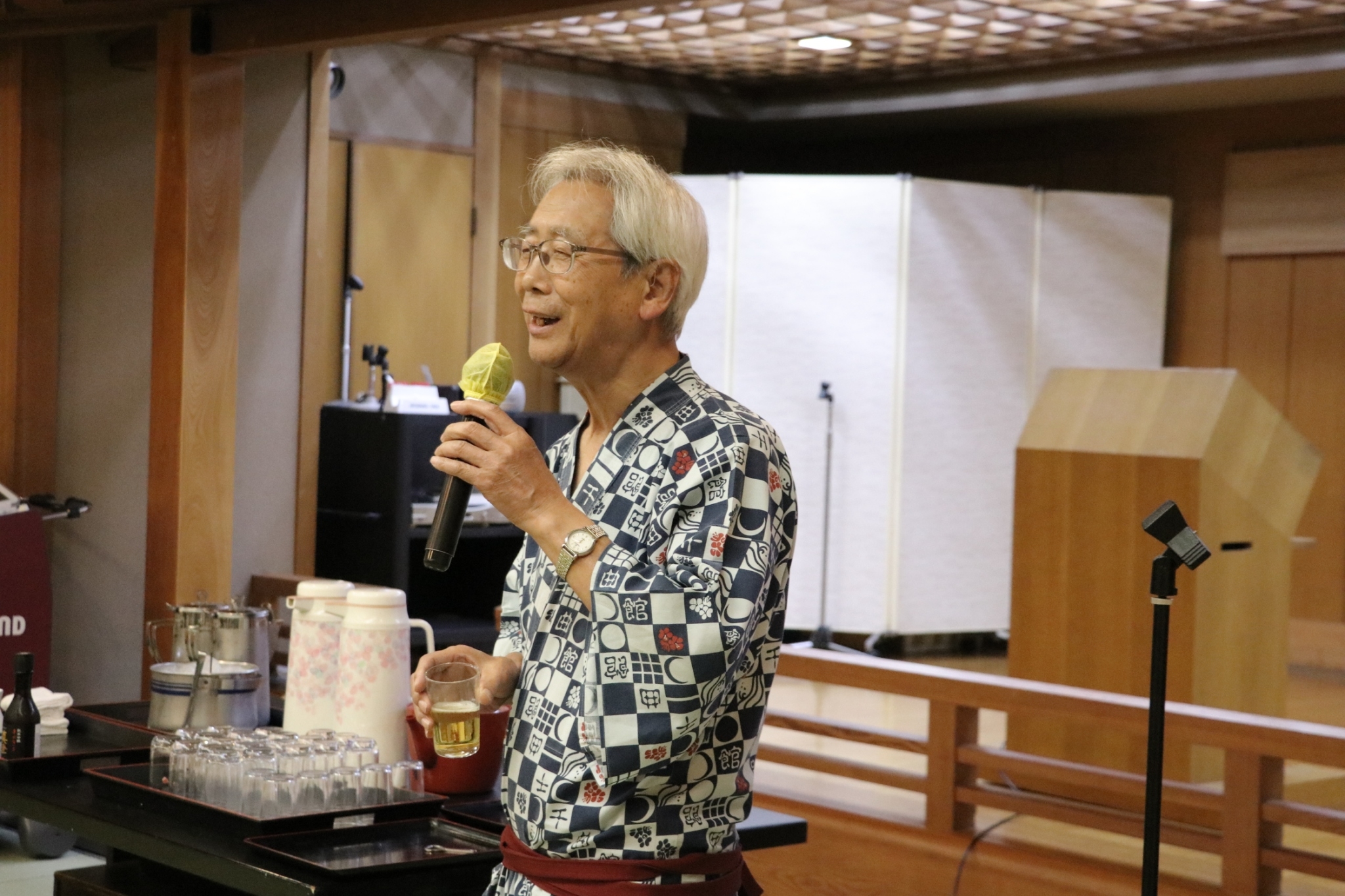 加藤会長が閉会&二次会の飲み部屋を案内し、