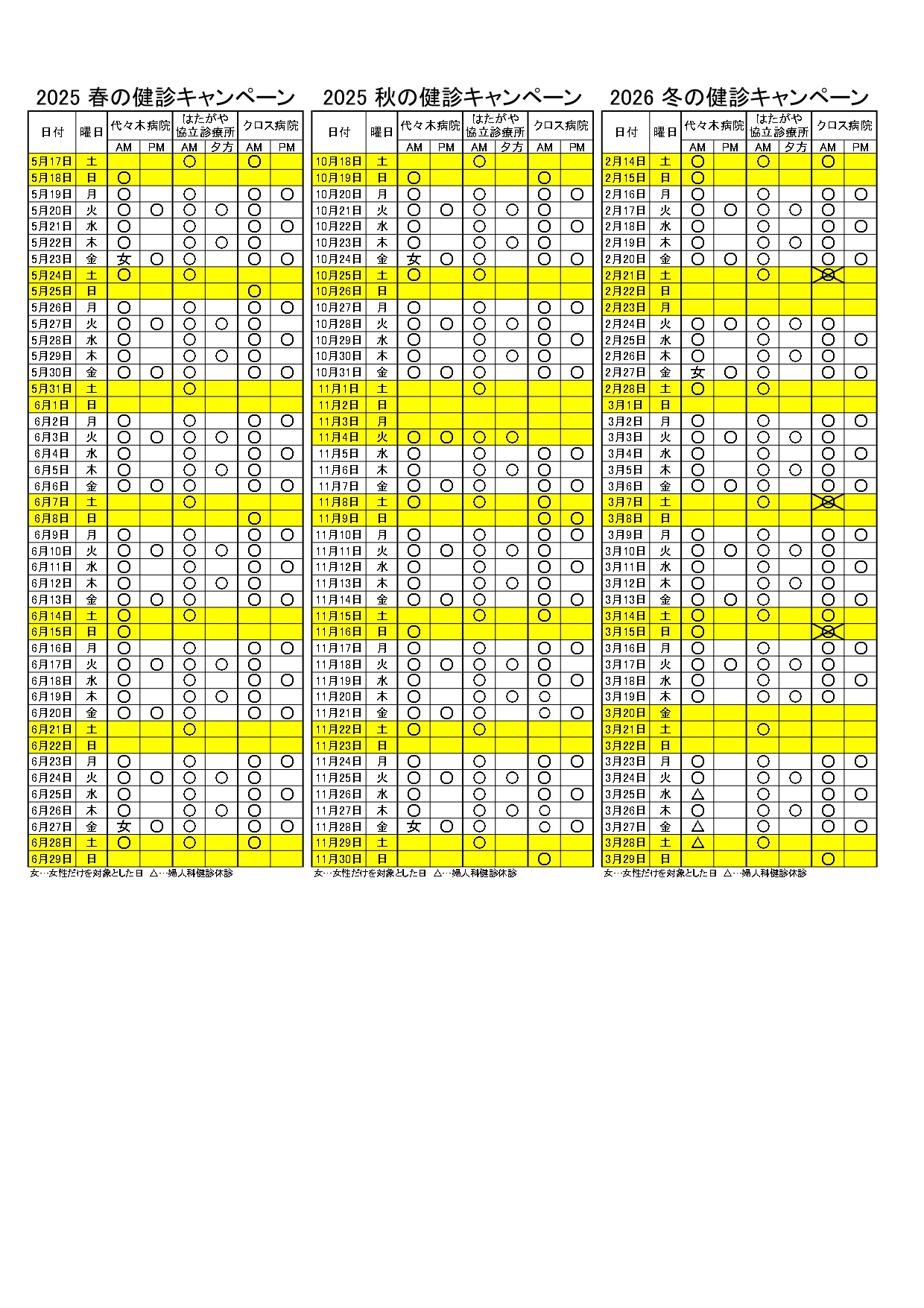※クロス病院の2月・3月の土日の日程が変更されました。当該ページ記載の表は変更後のものとなっております(2026/2/5)