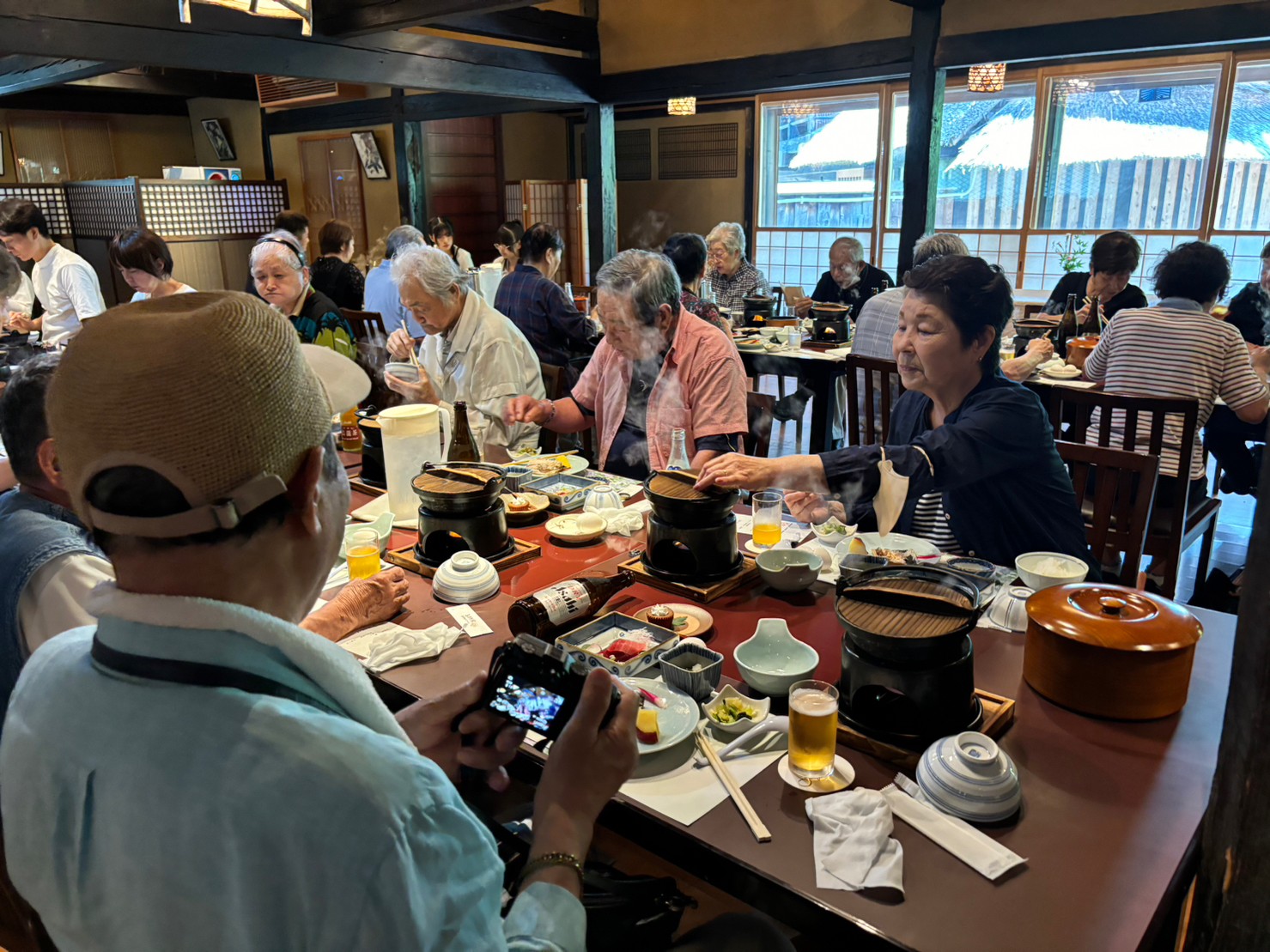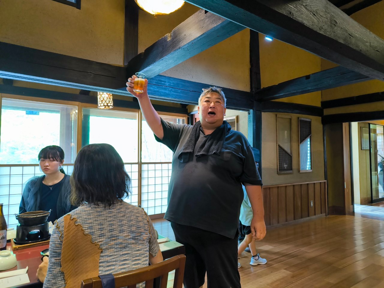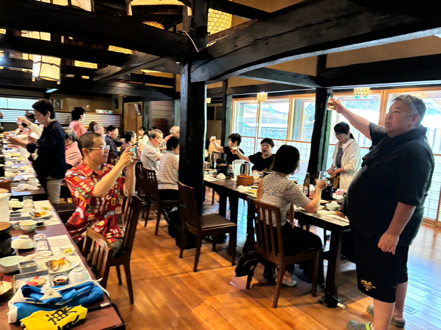 食後は源泉かけ流し温泉に入る方、のんびり自然を楽しむ方、宴会場で飲み会を継続する方、皆さん自由に過ごしていました。