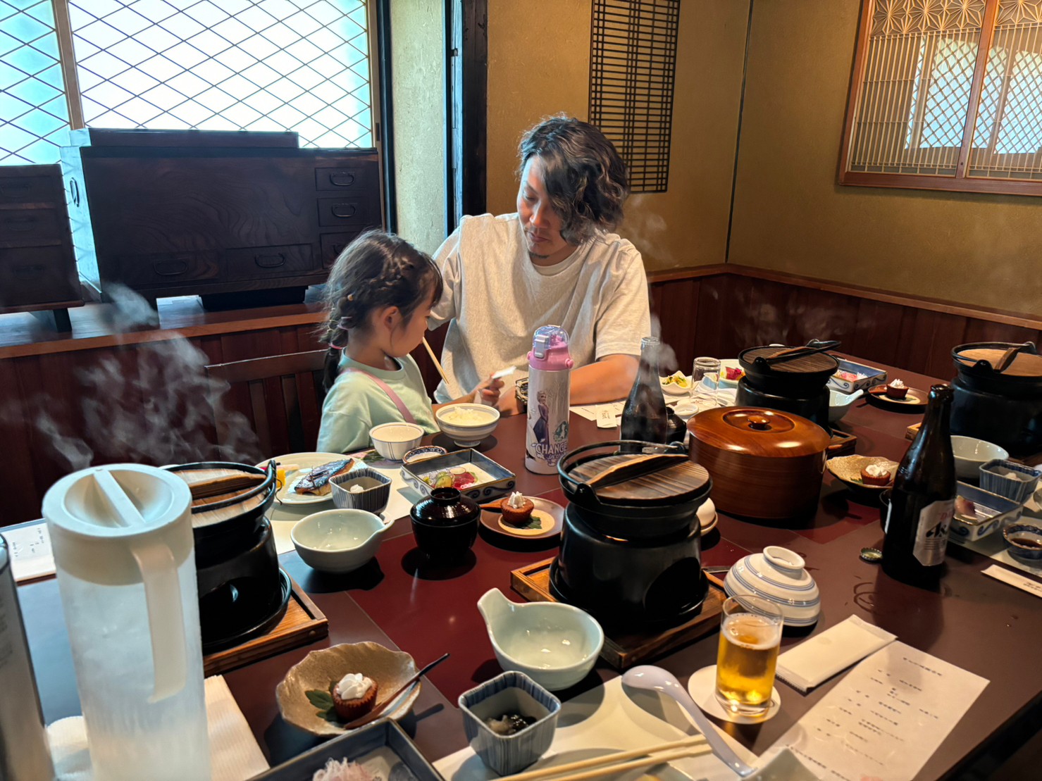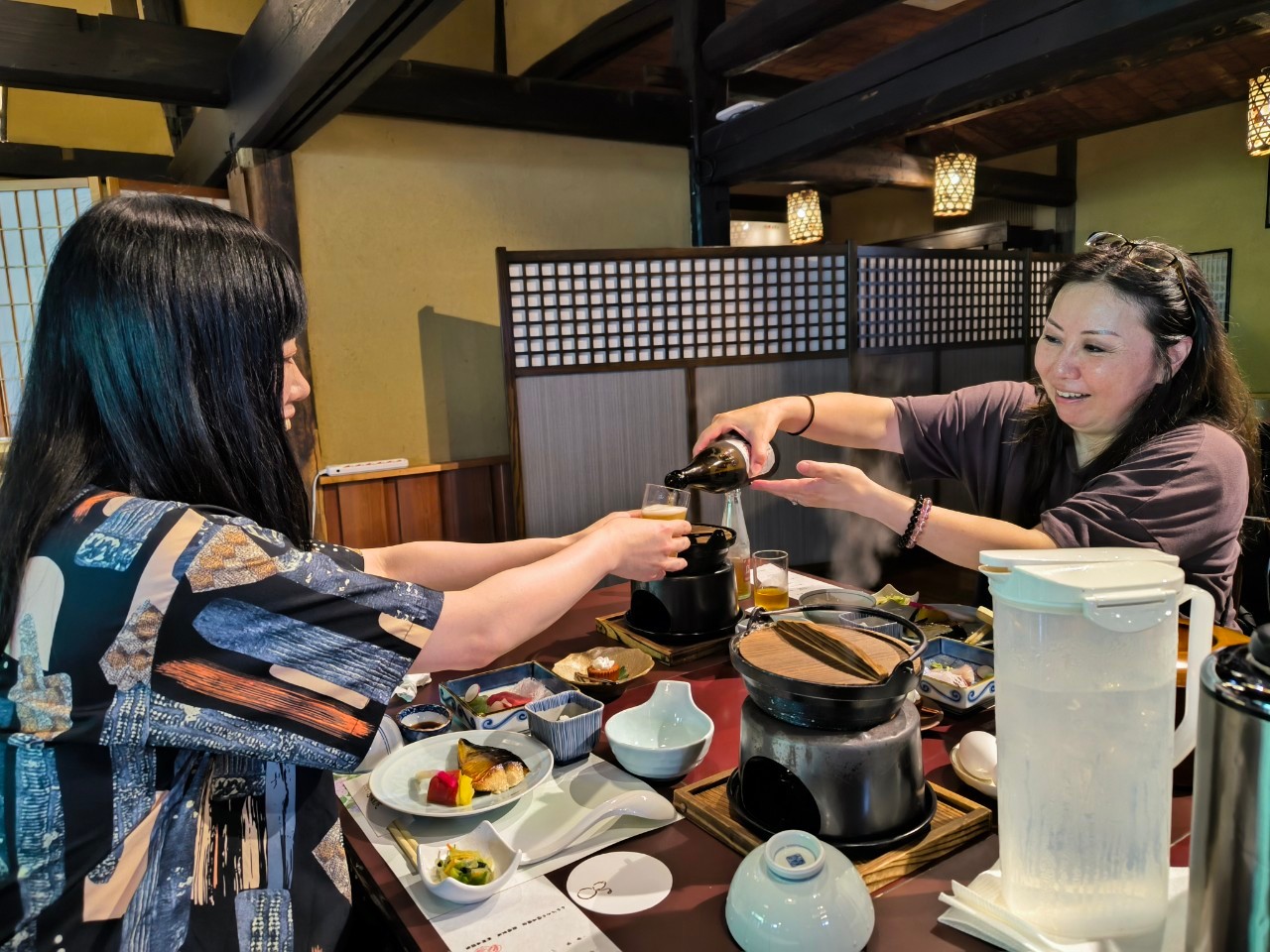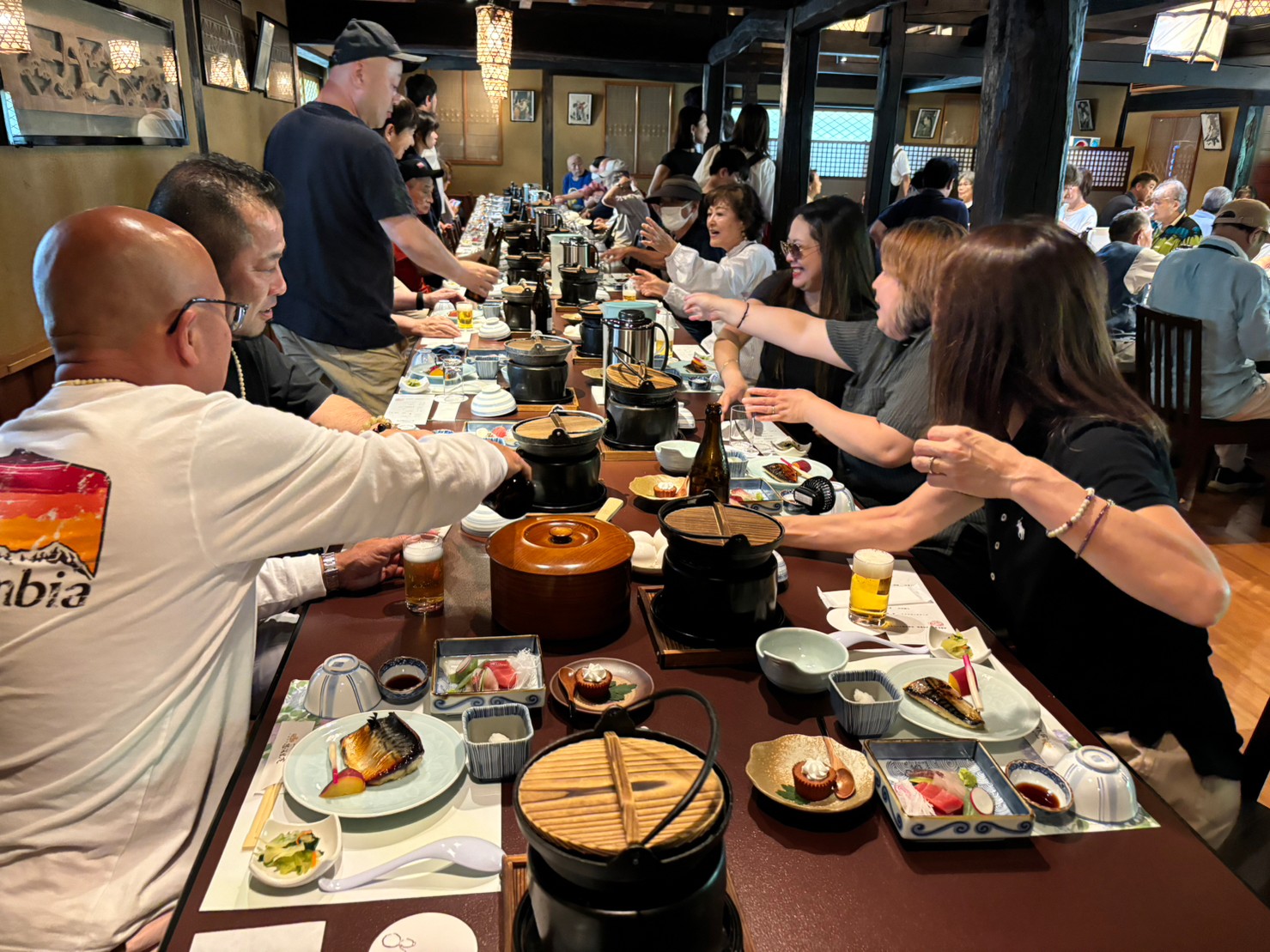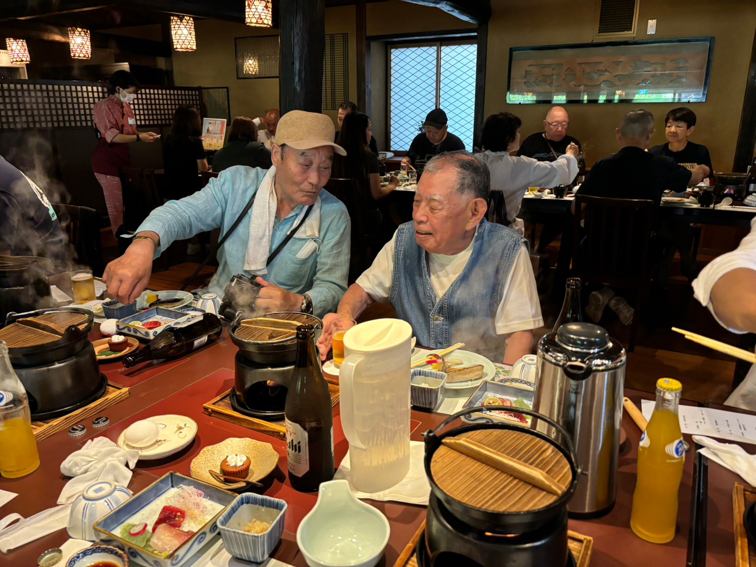 食後は源泉かけ流し温泉に入る方、のんびり自然を楽しむ方、宴会場で飲み会を継続する方、皆さん自由に過ごしていました。