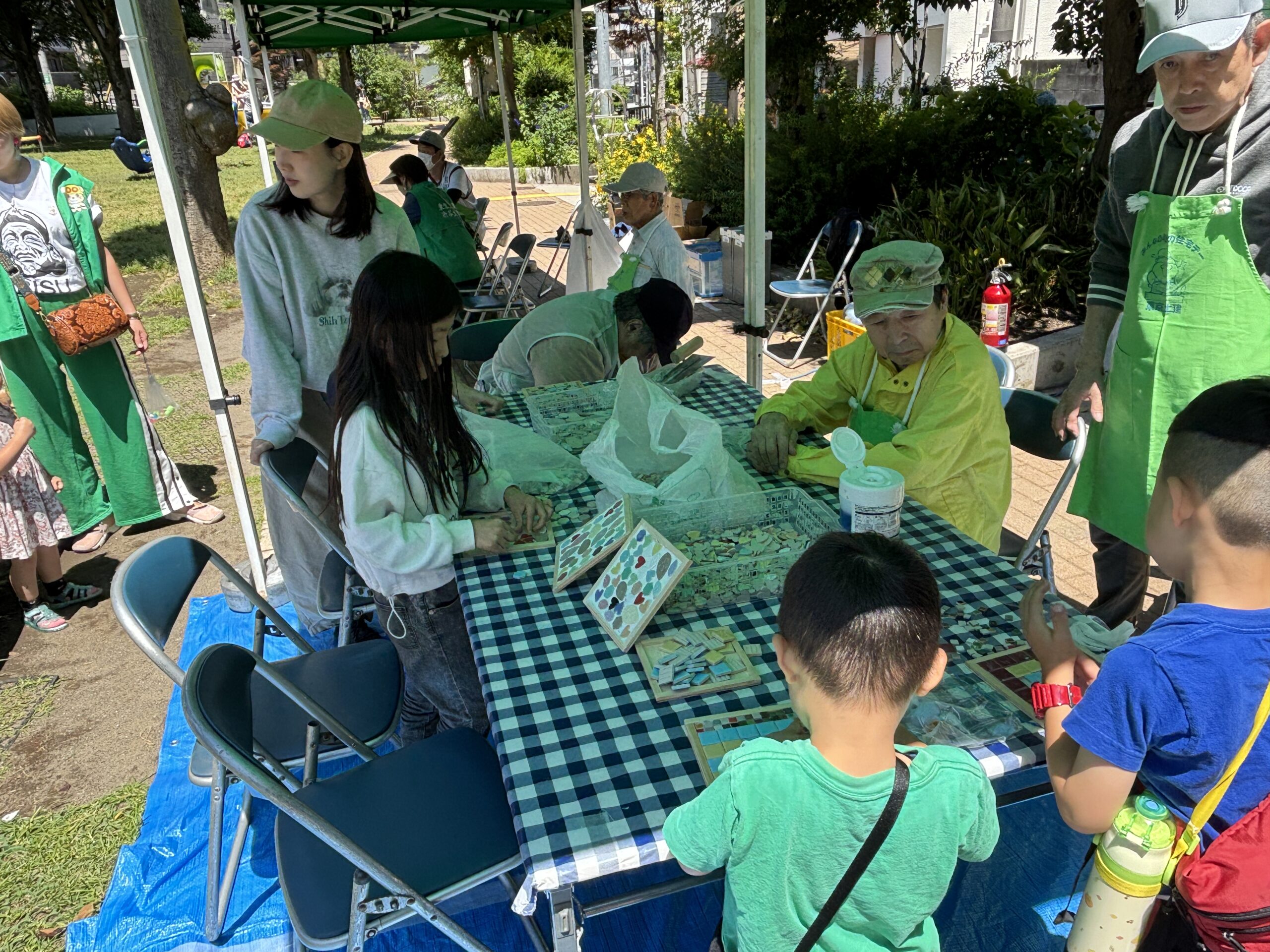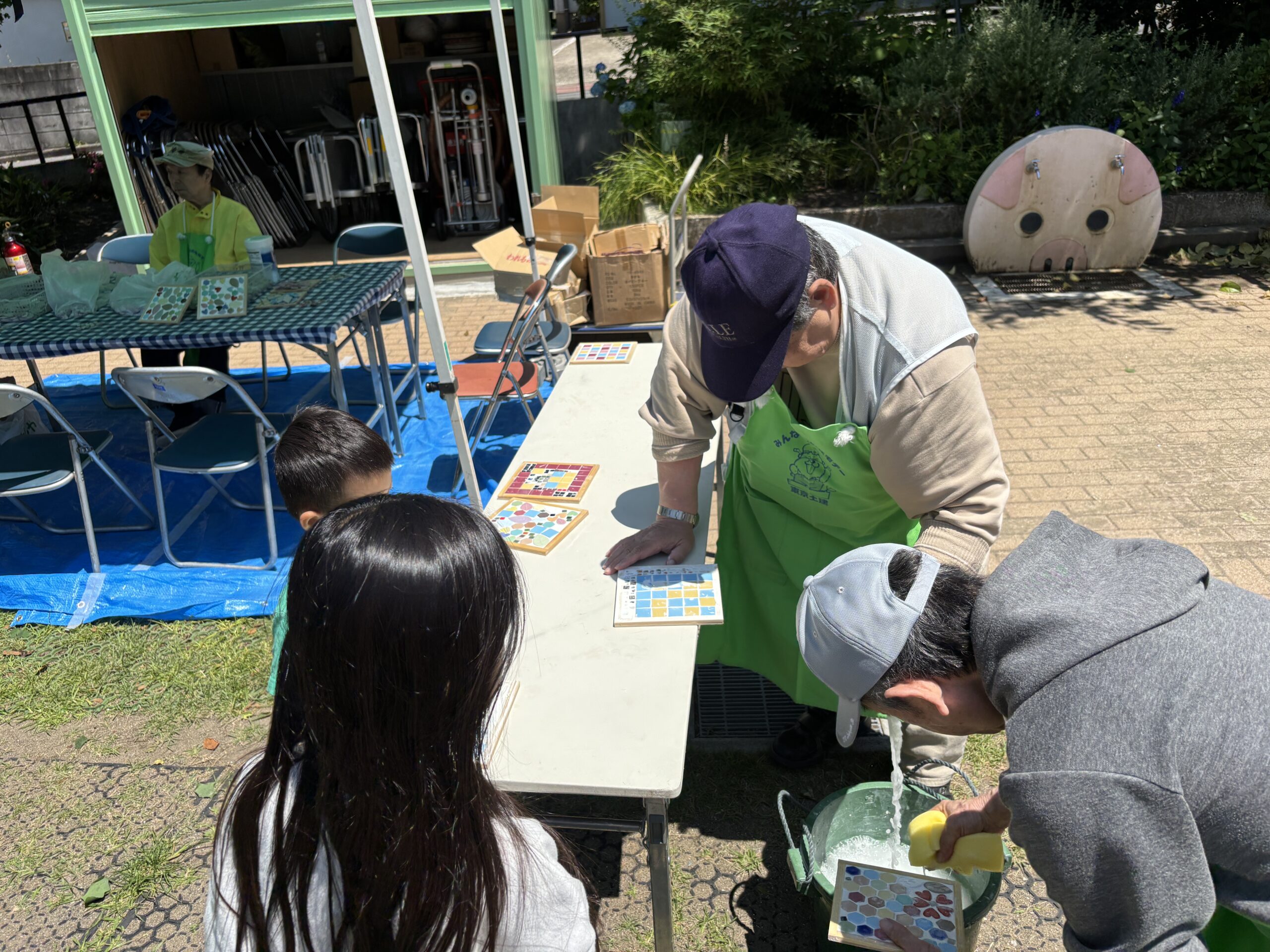 コースターの枠に面一杯タイルを敷き詰めて作っている子が多かったです。