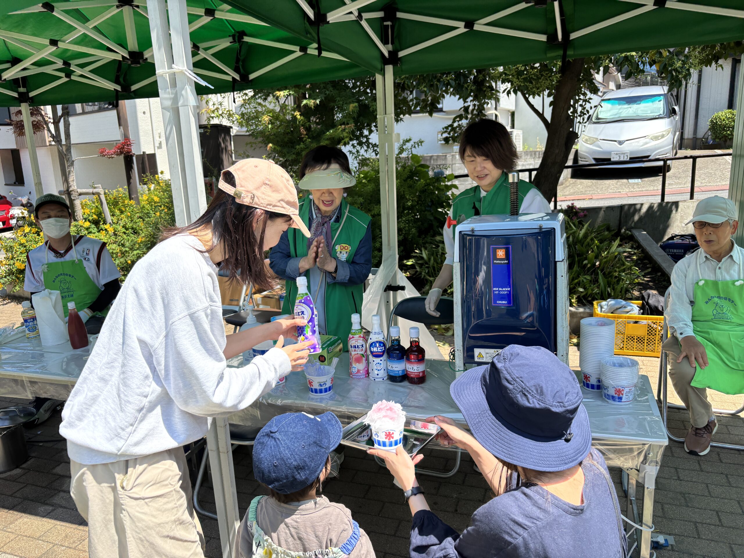 かき氷は写真の外にも並びが出来るほどでした。準備していた氷も売り切れて買い足しながら販売。