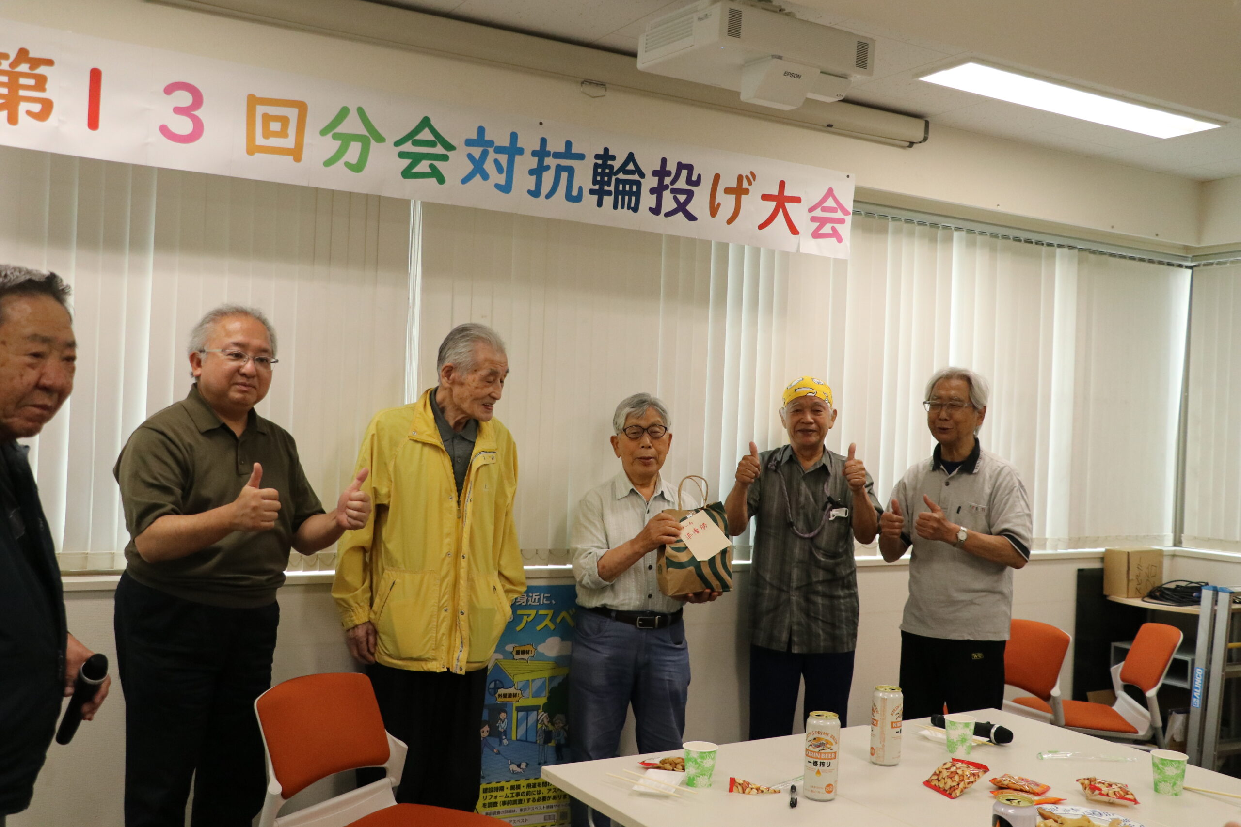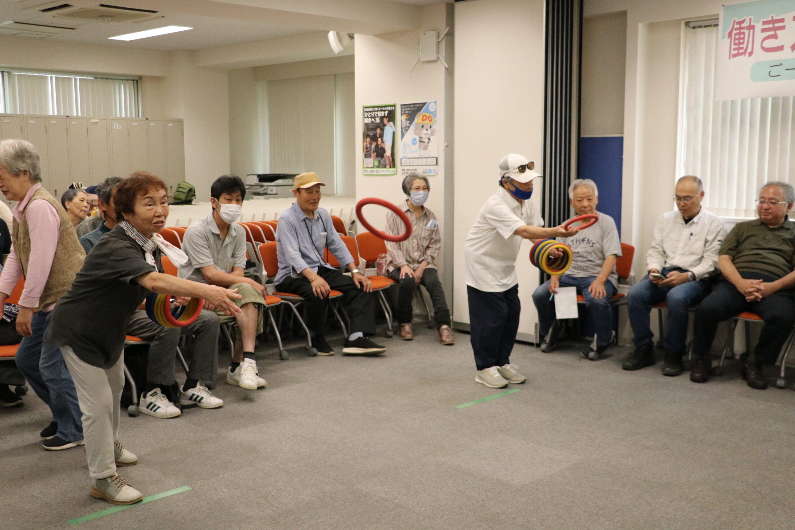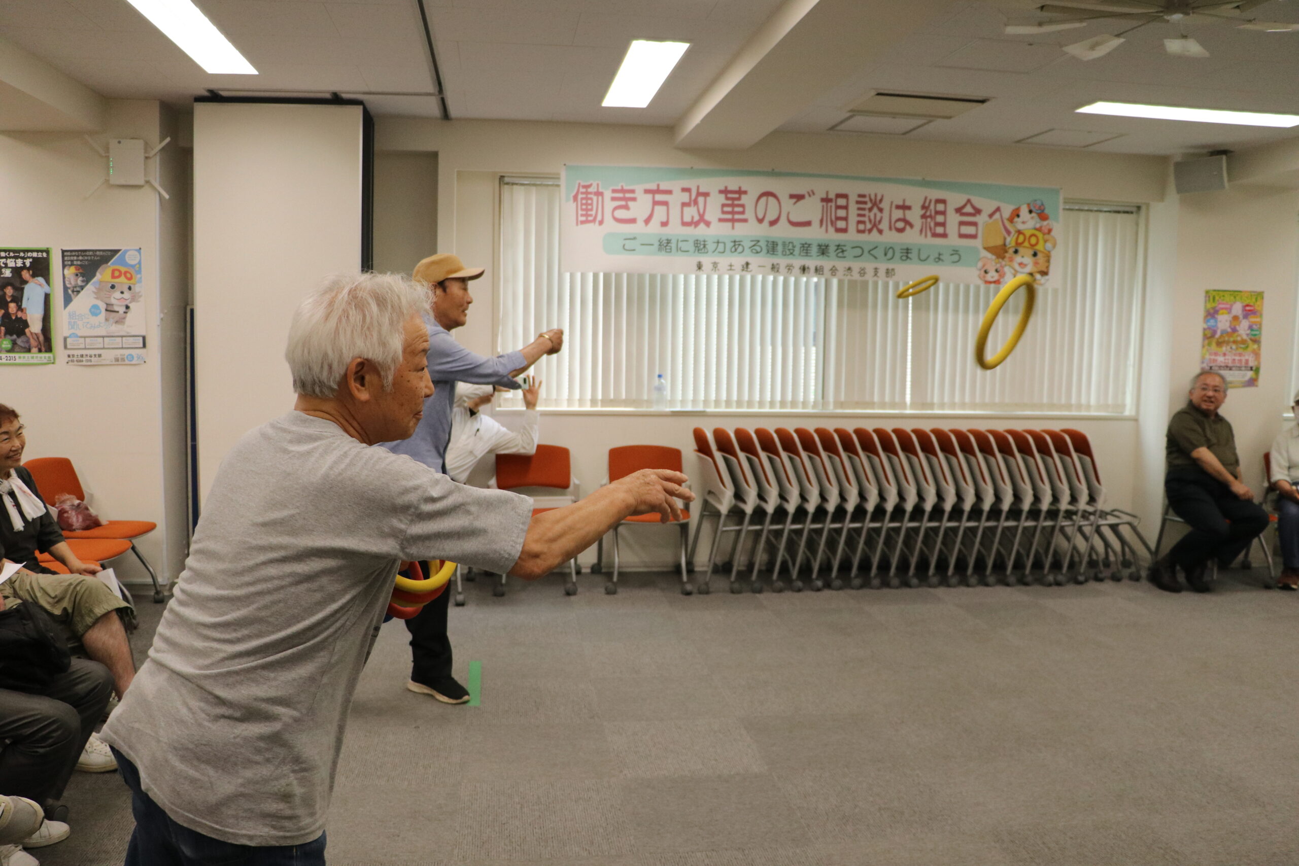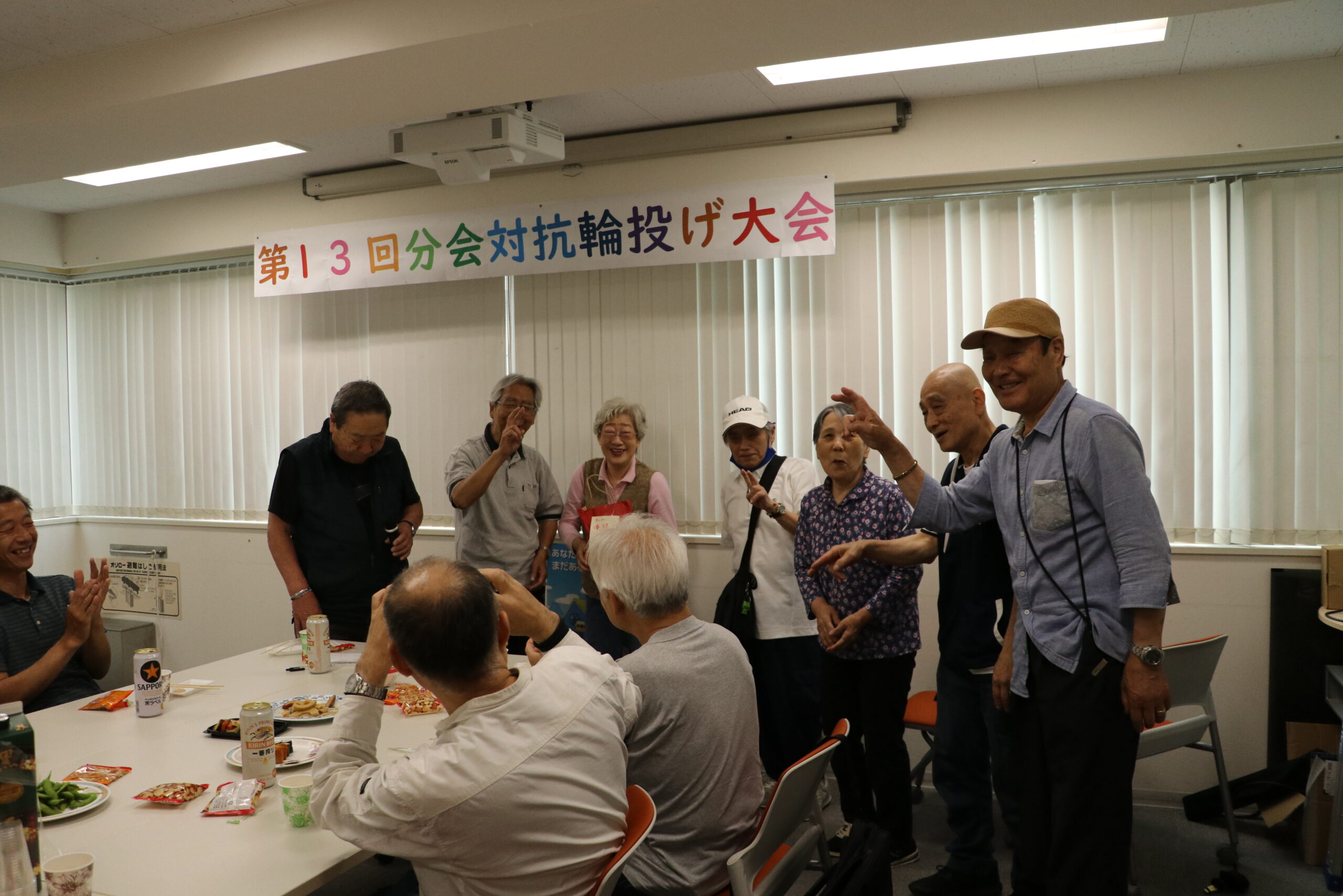 シニアクラブは毎週土曜日午前中に支部事務所で、どなたでも参加できる輪投げ練習をしています。