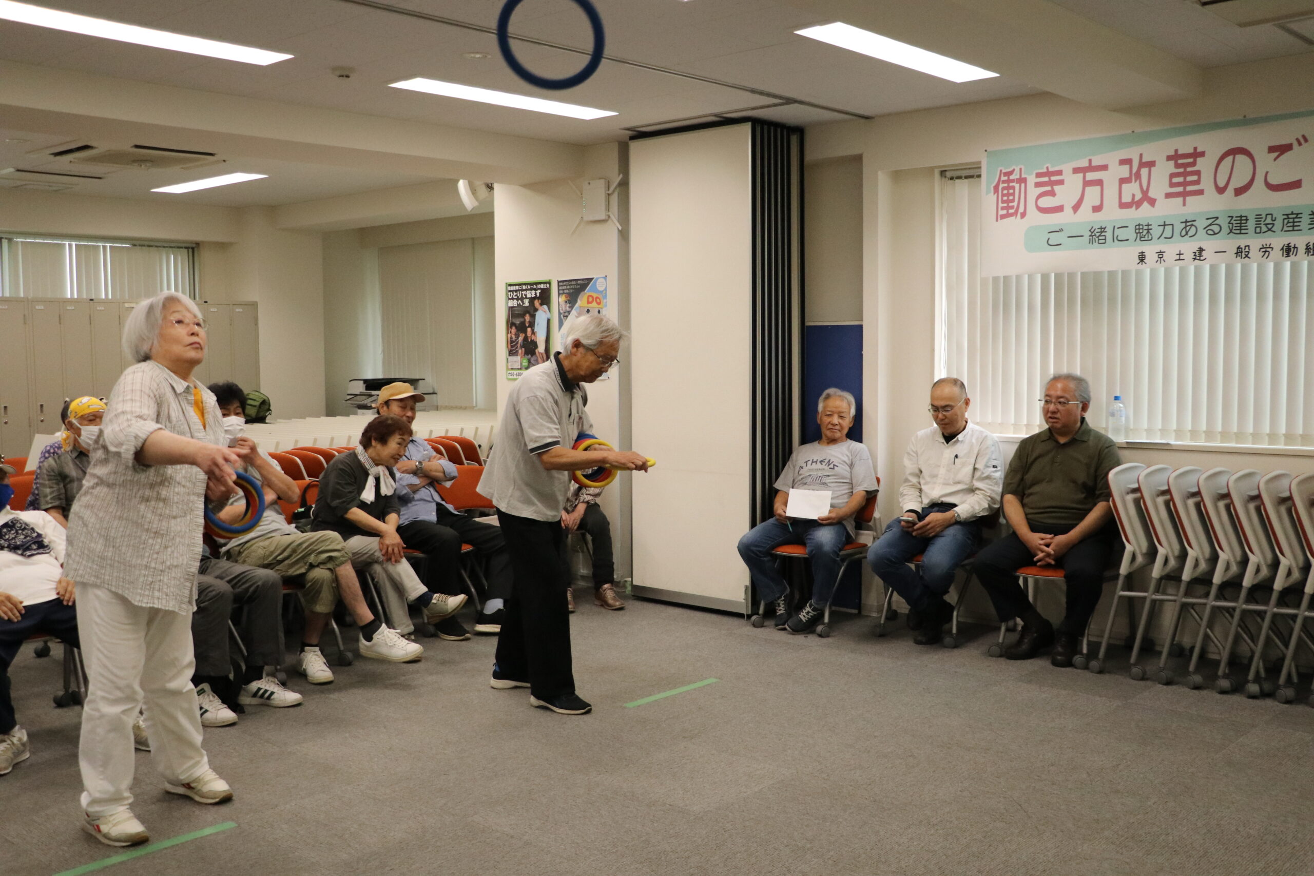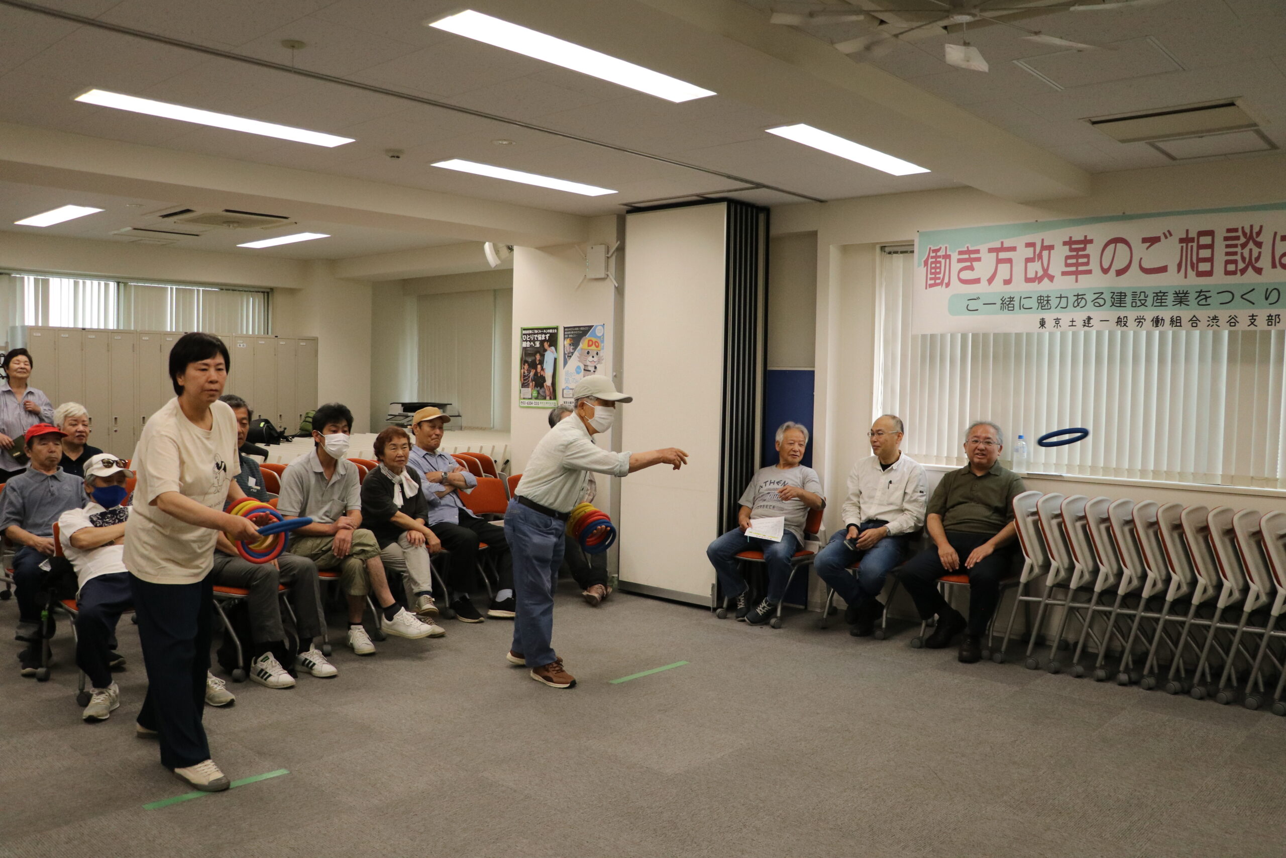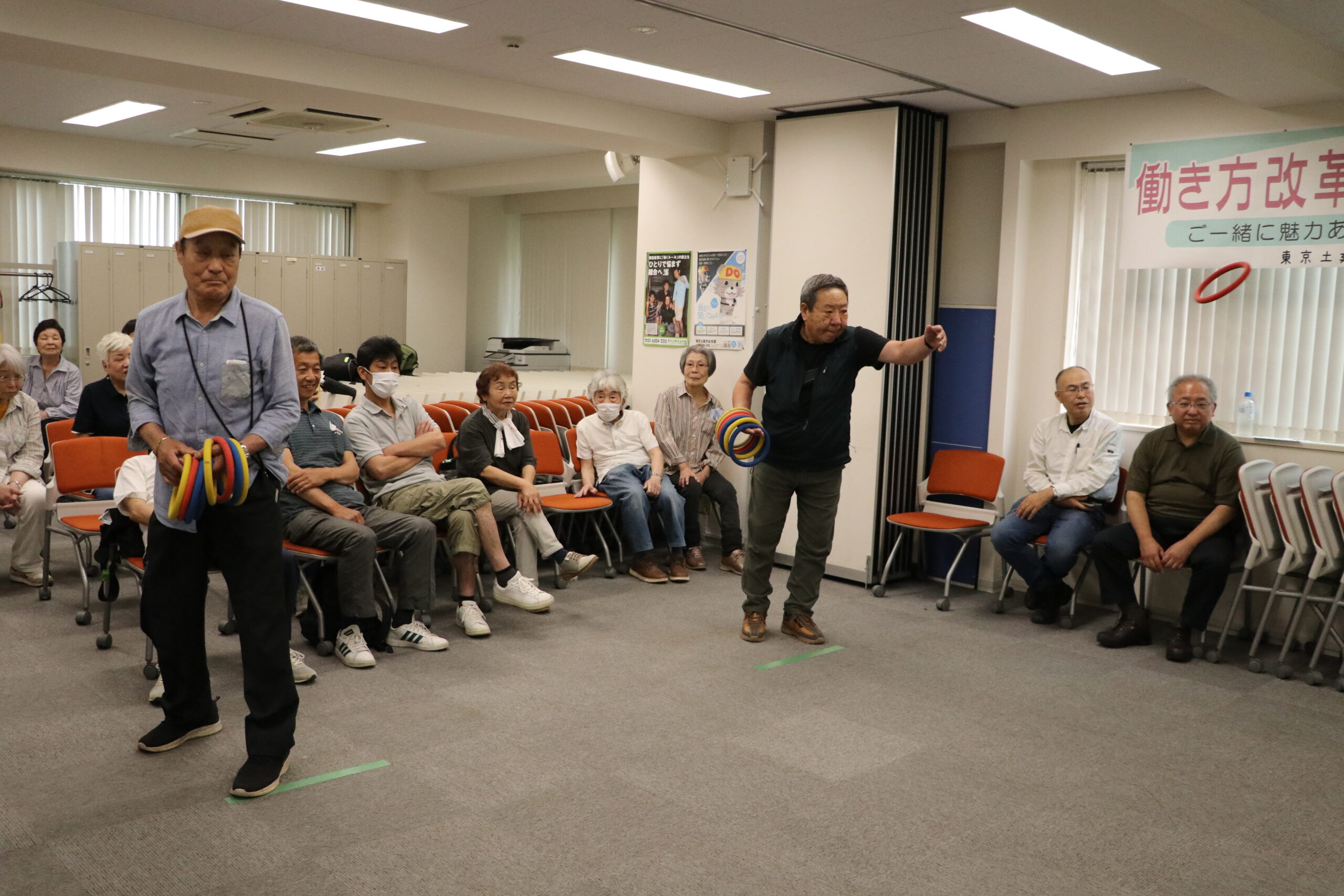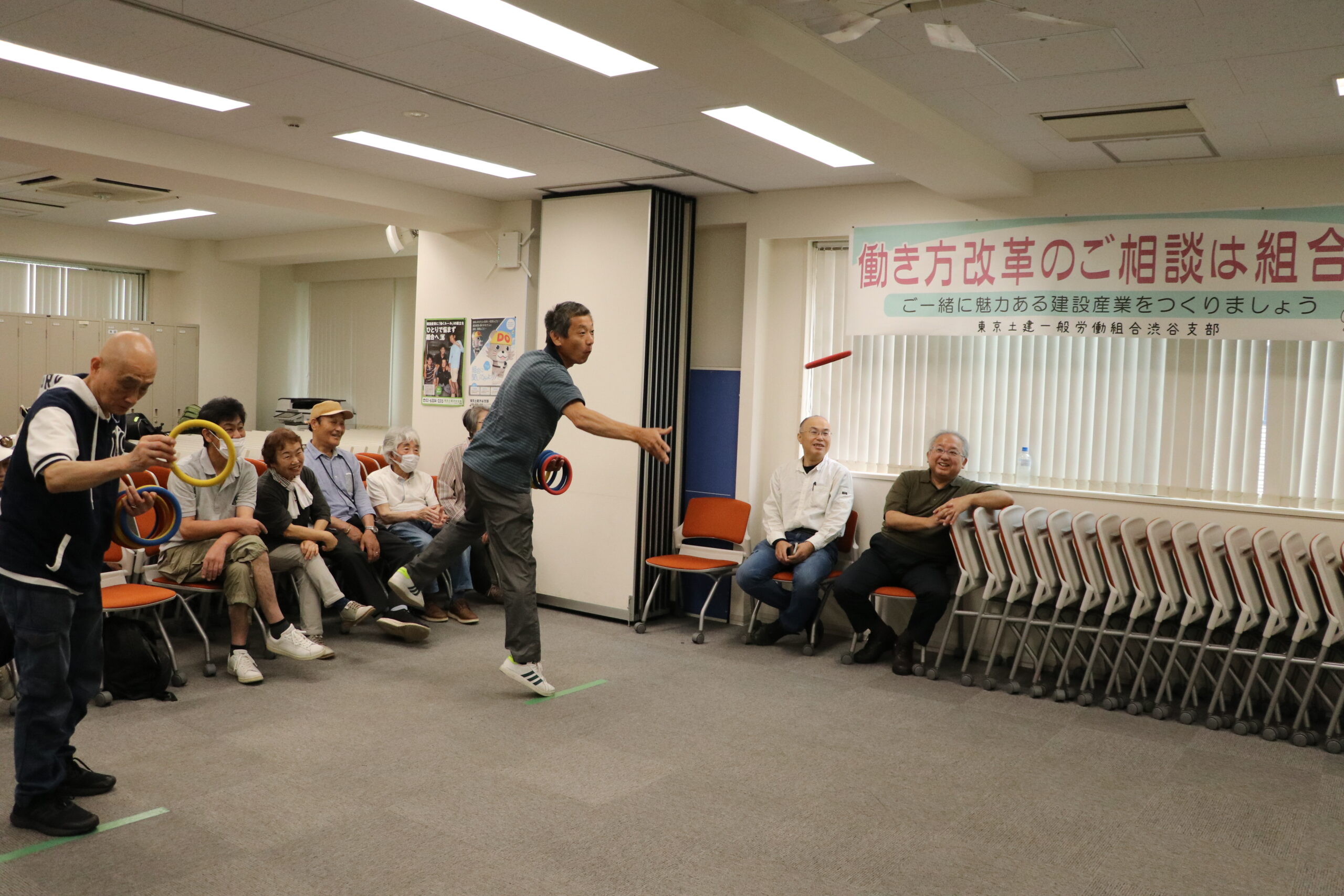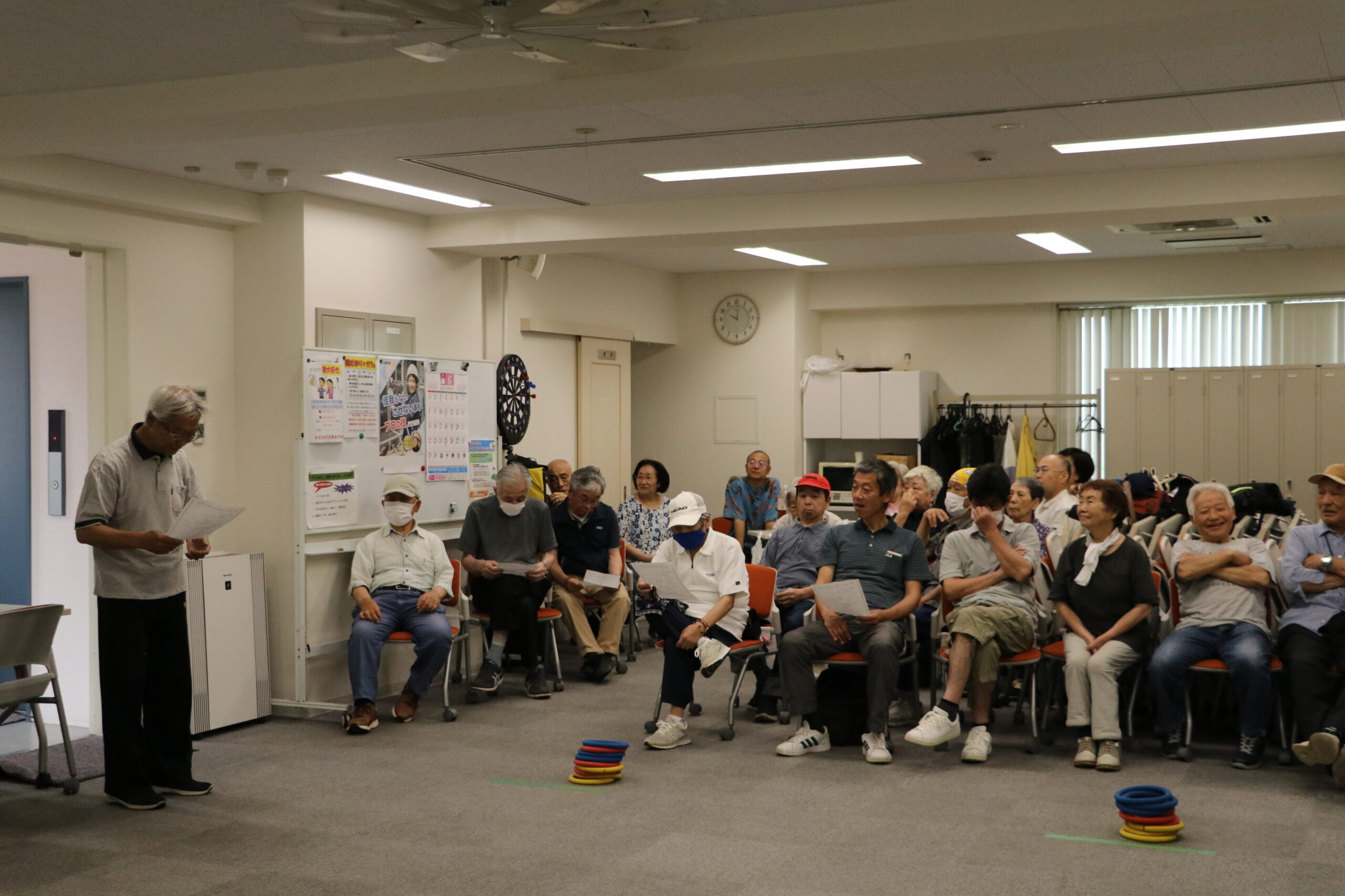 シニアクラブは毎週土曜日午前中に支部事務所で、どなたでも参加できる輪投げ練習をしています。