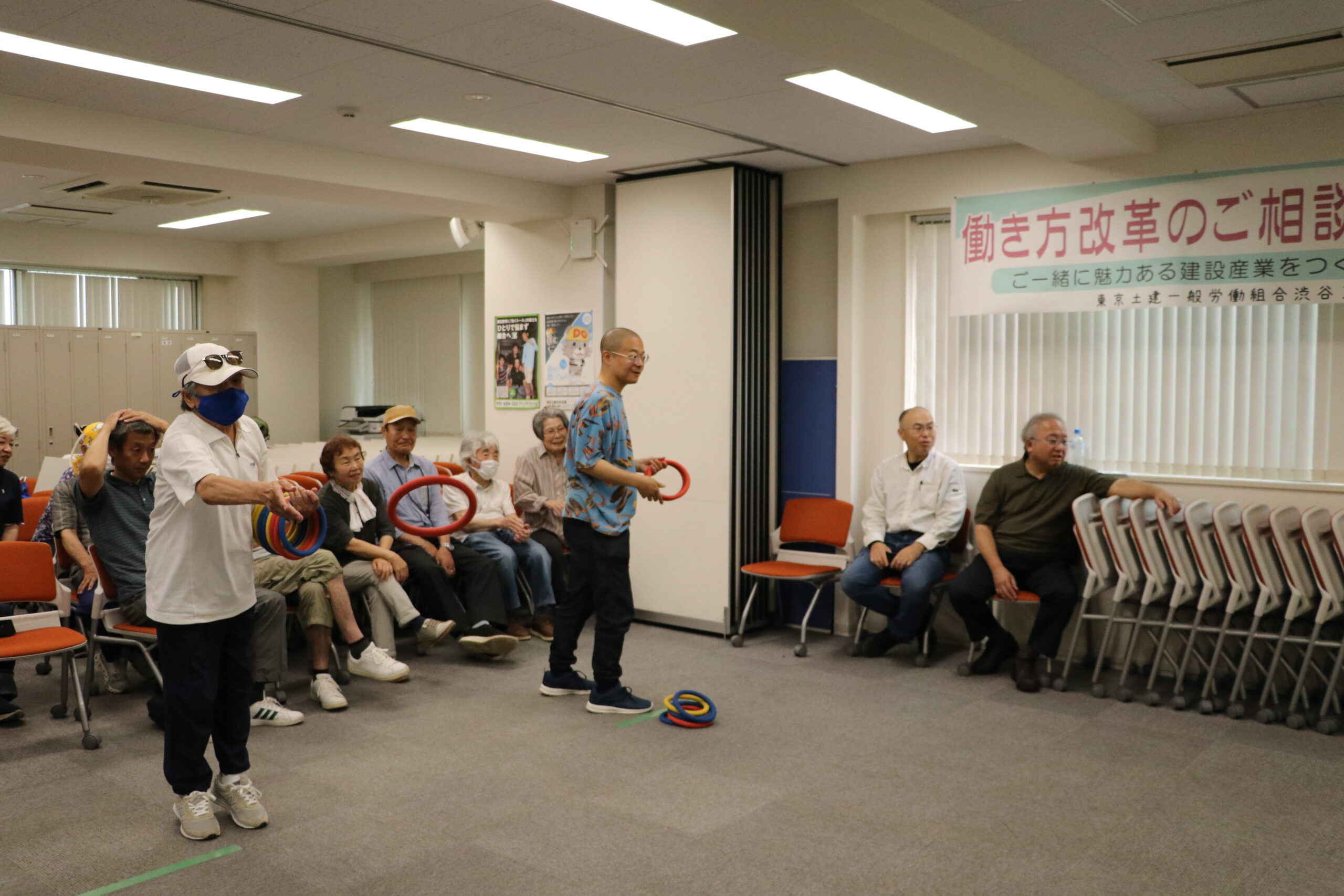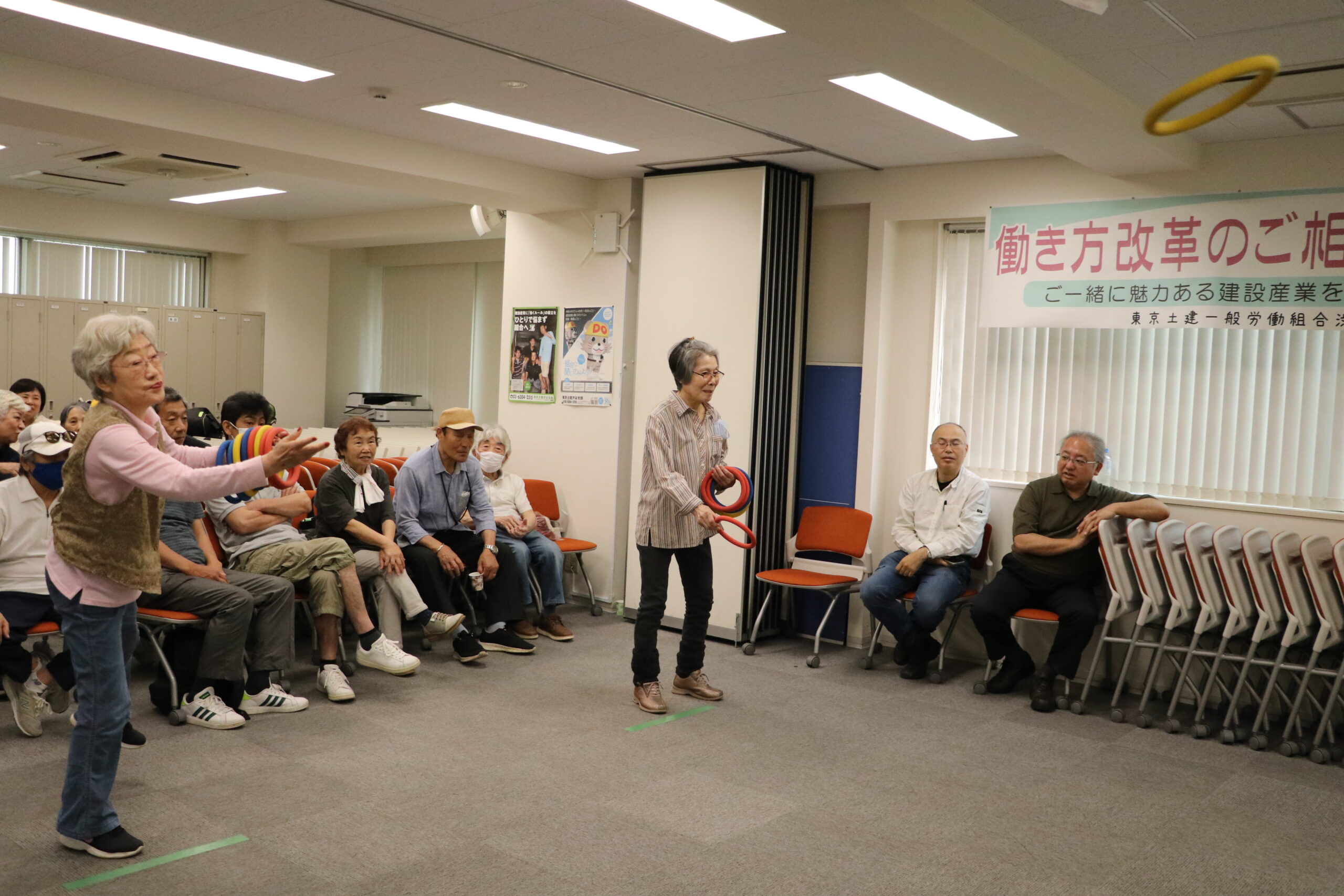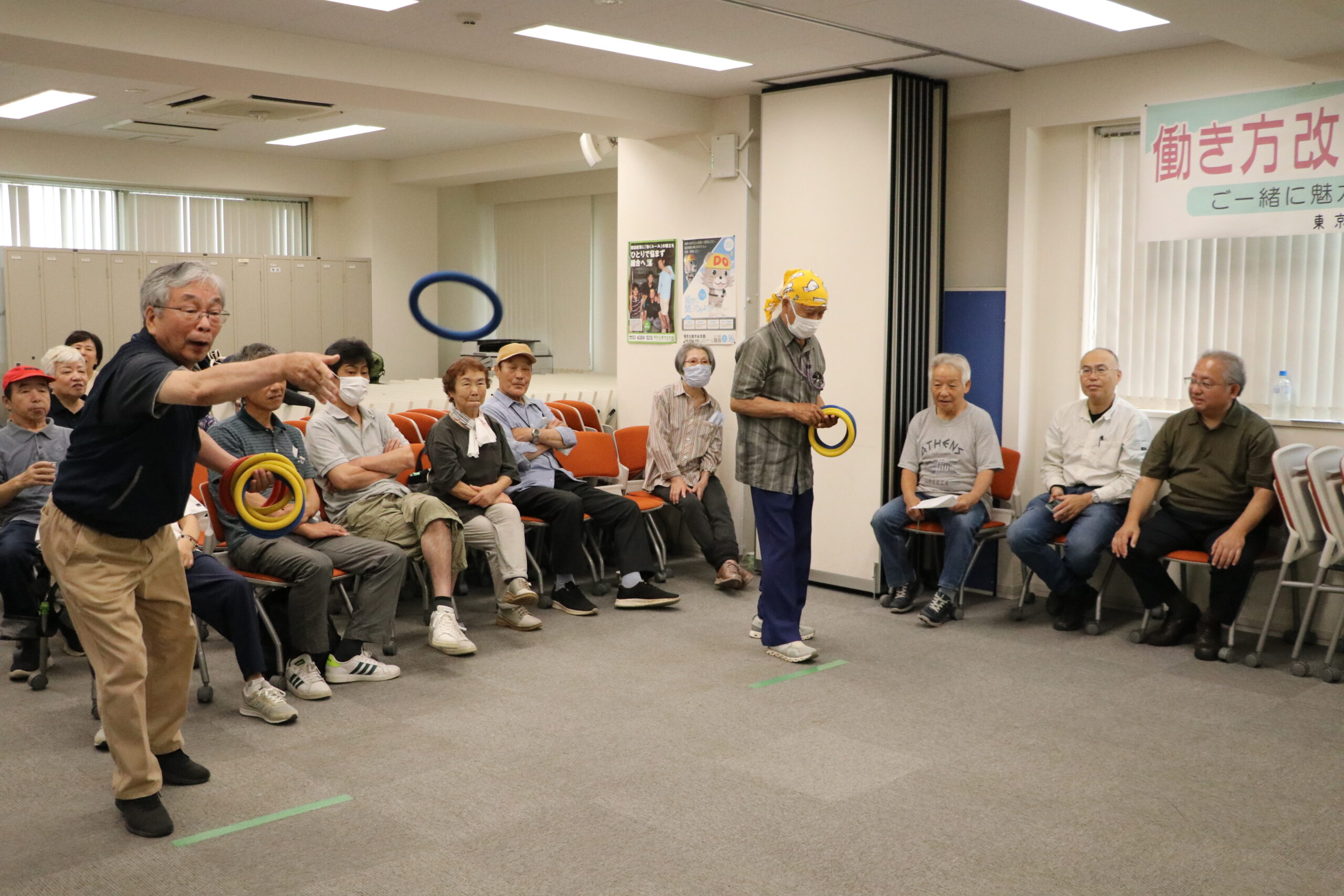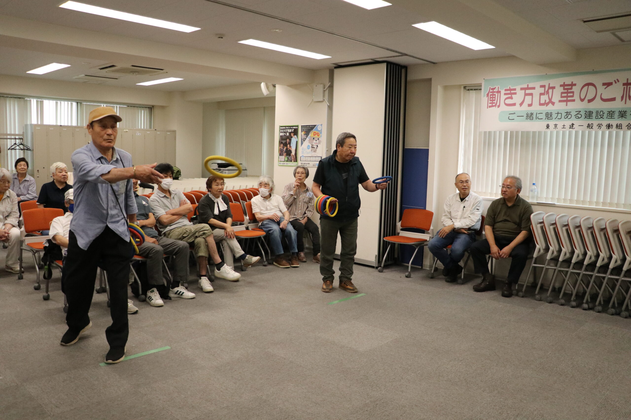 シニアクラブは毎週土曜日午前中に支部事務所で、どなたでも参加できる輪投げ練習をしています。