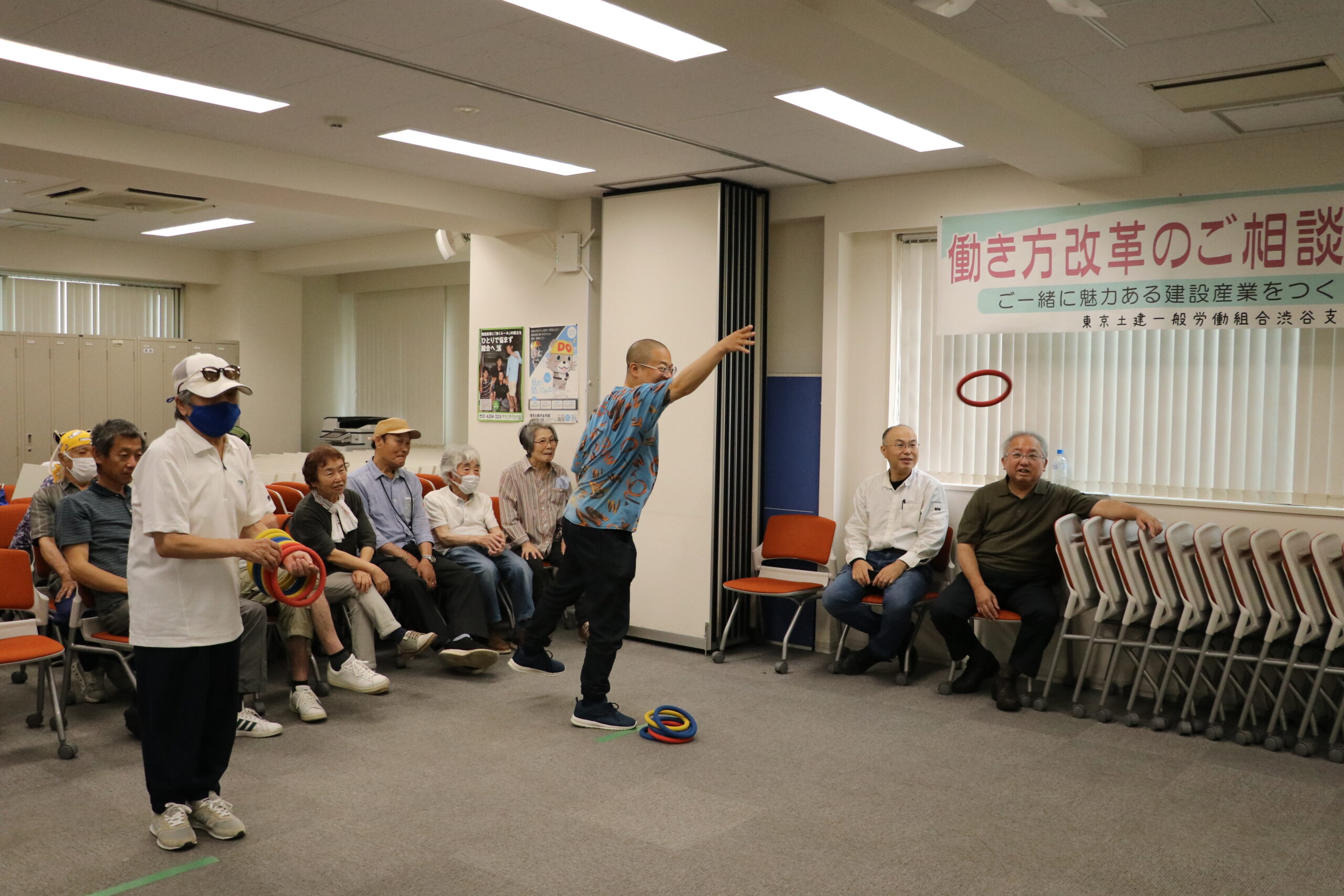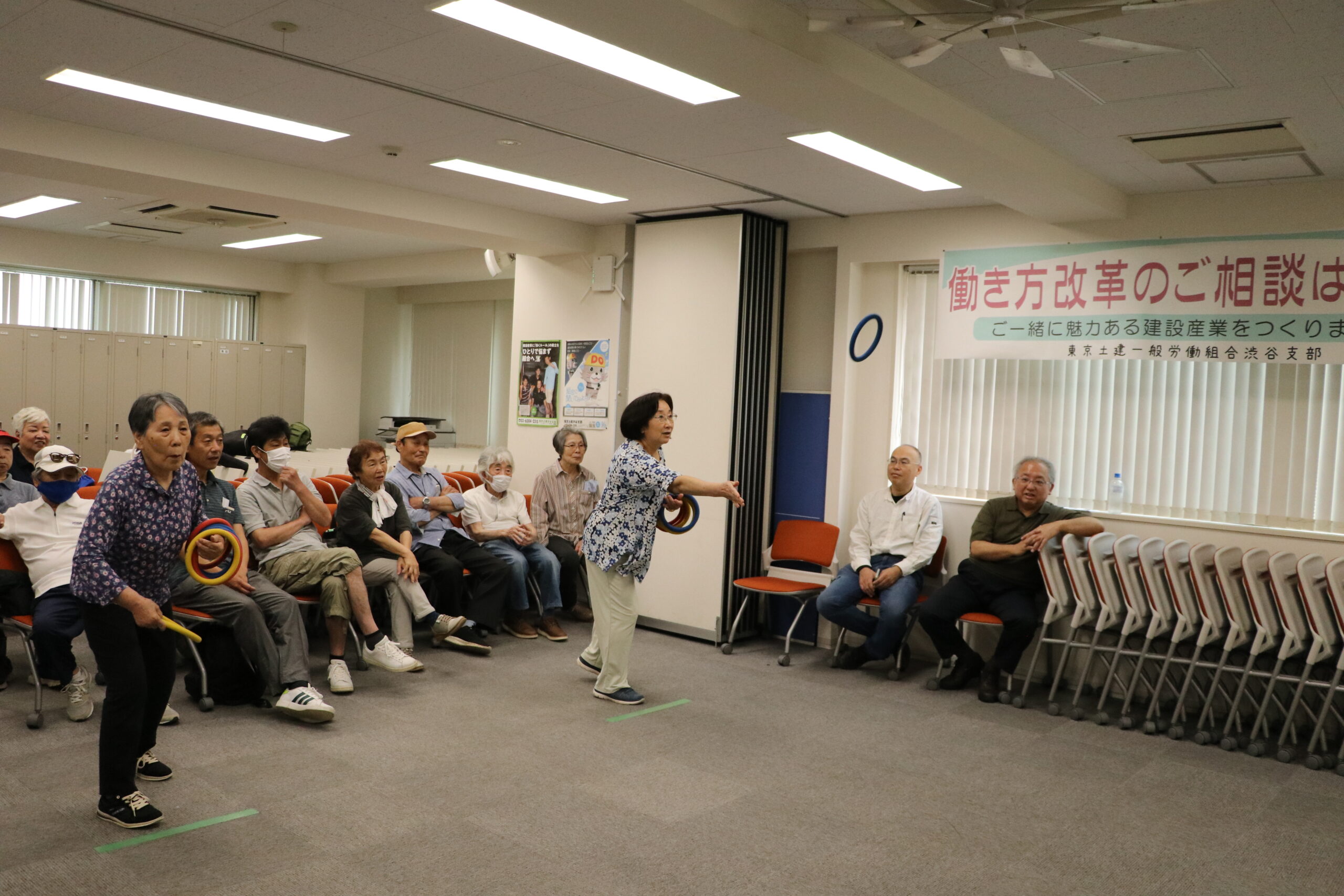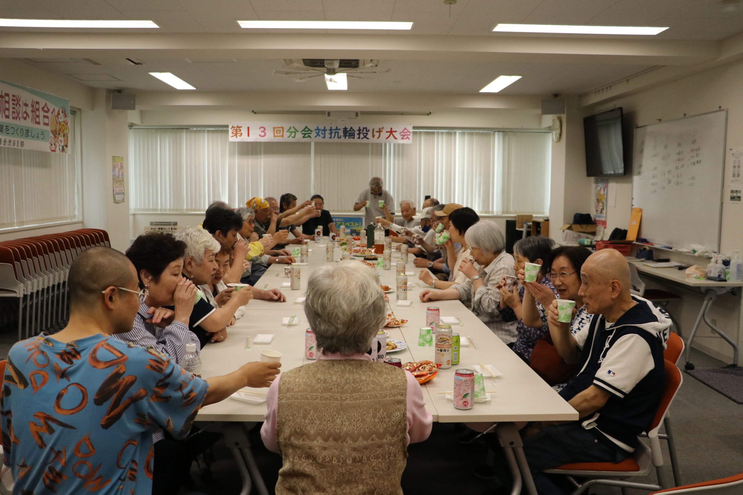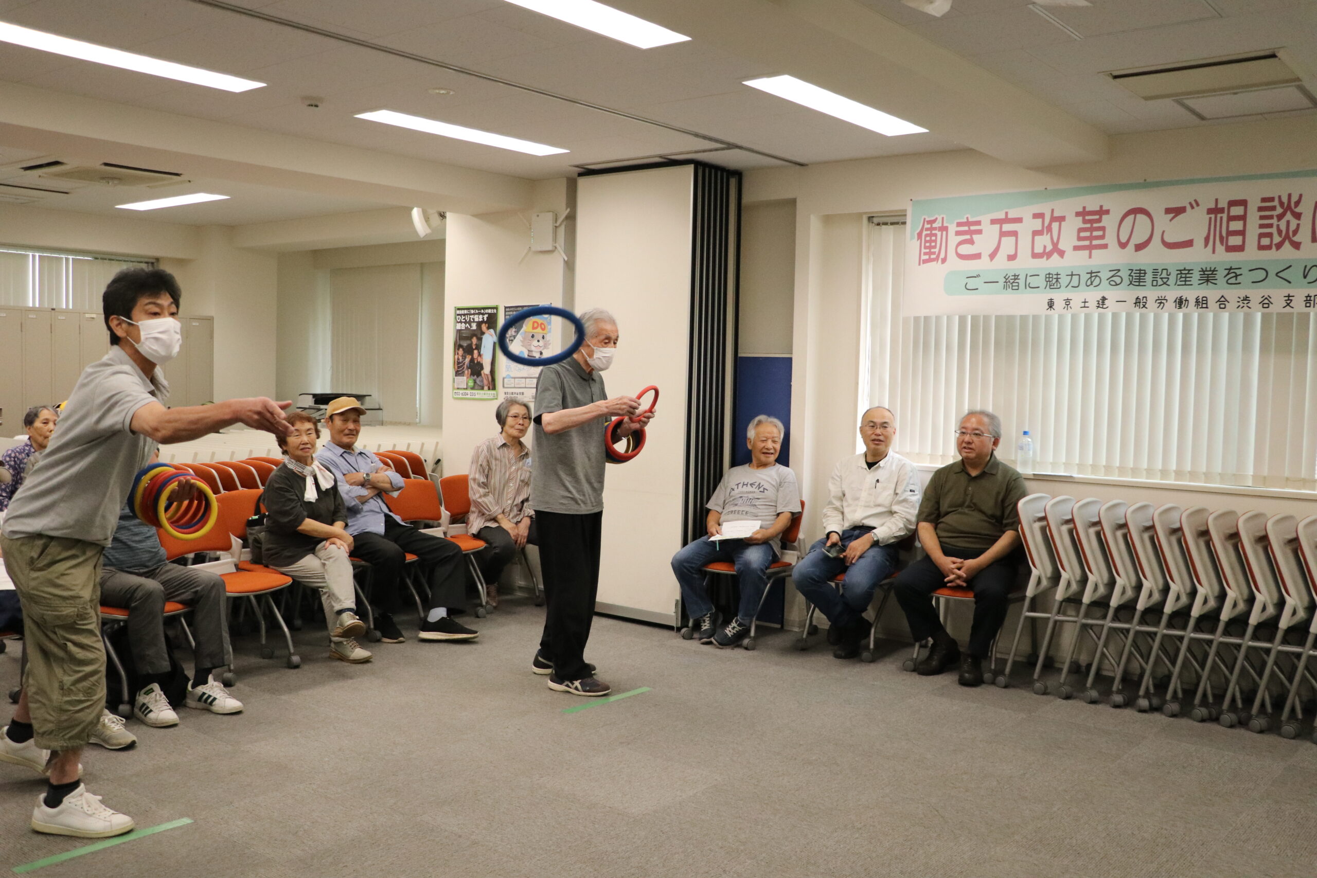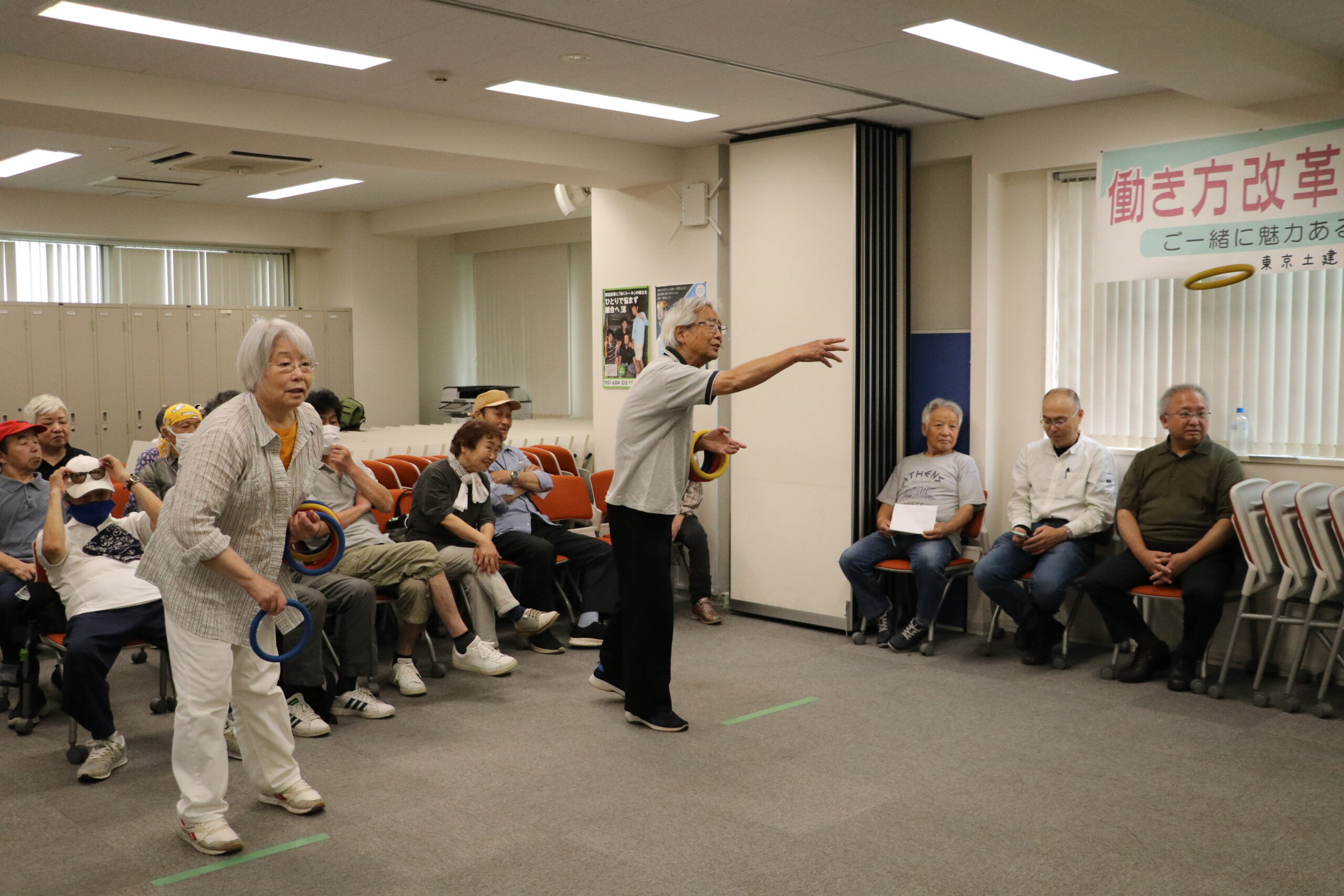 シニアクラブは毎週土曜日午前中に支部事務所で、どなたでも参加できる輪投げ練習をしています。