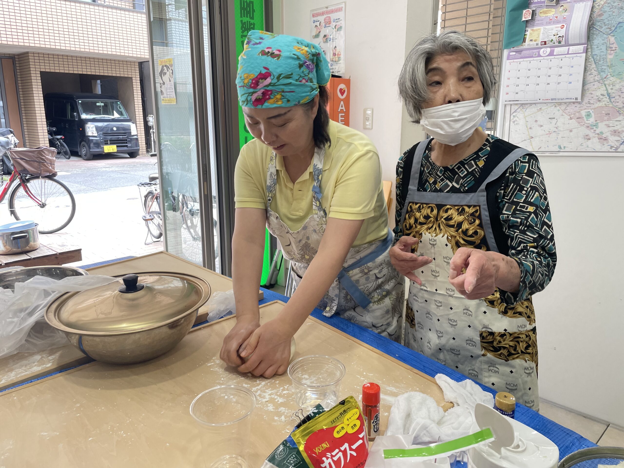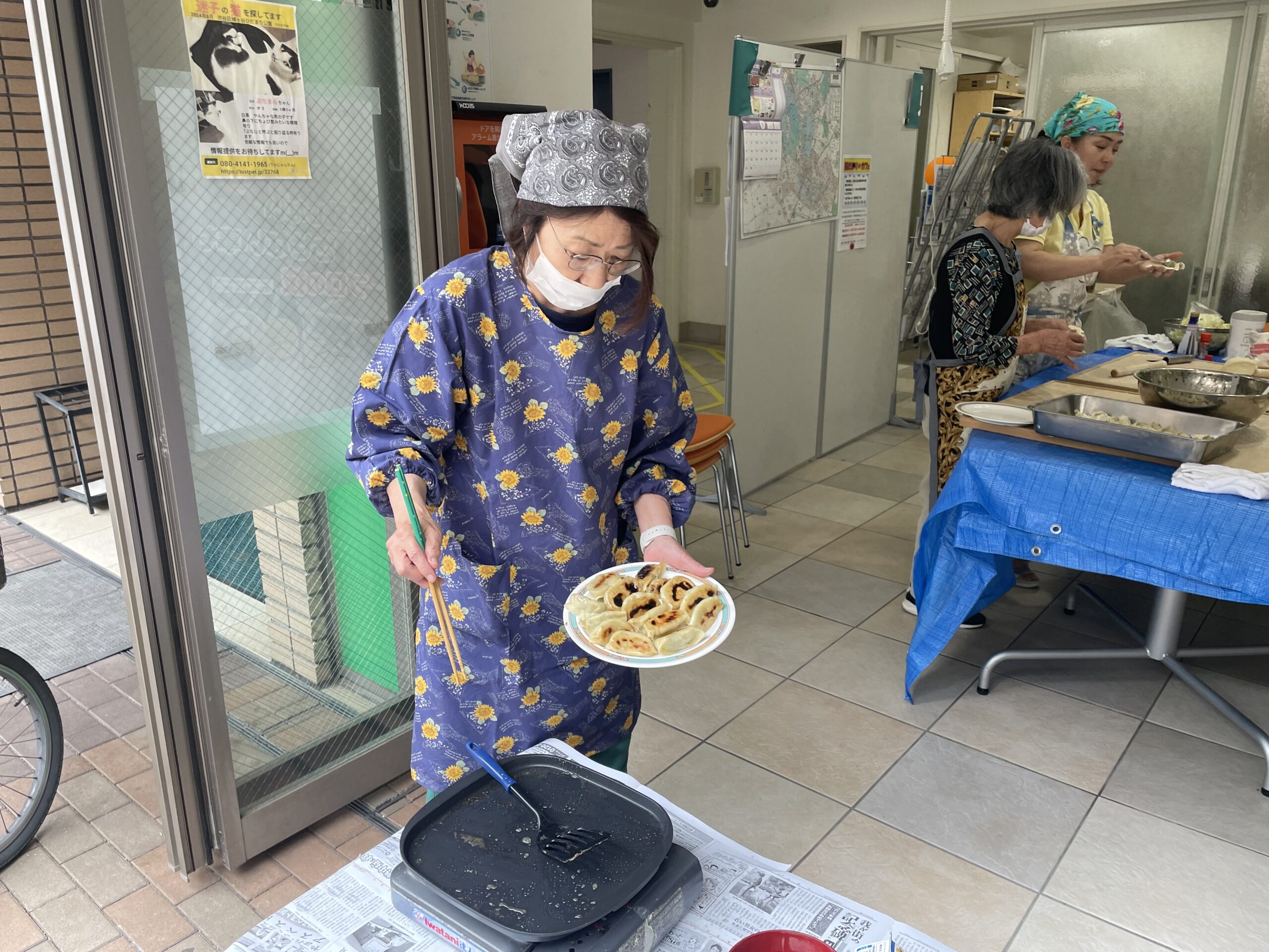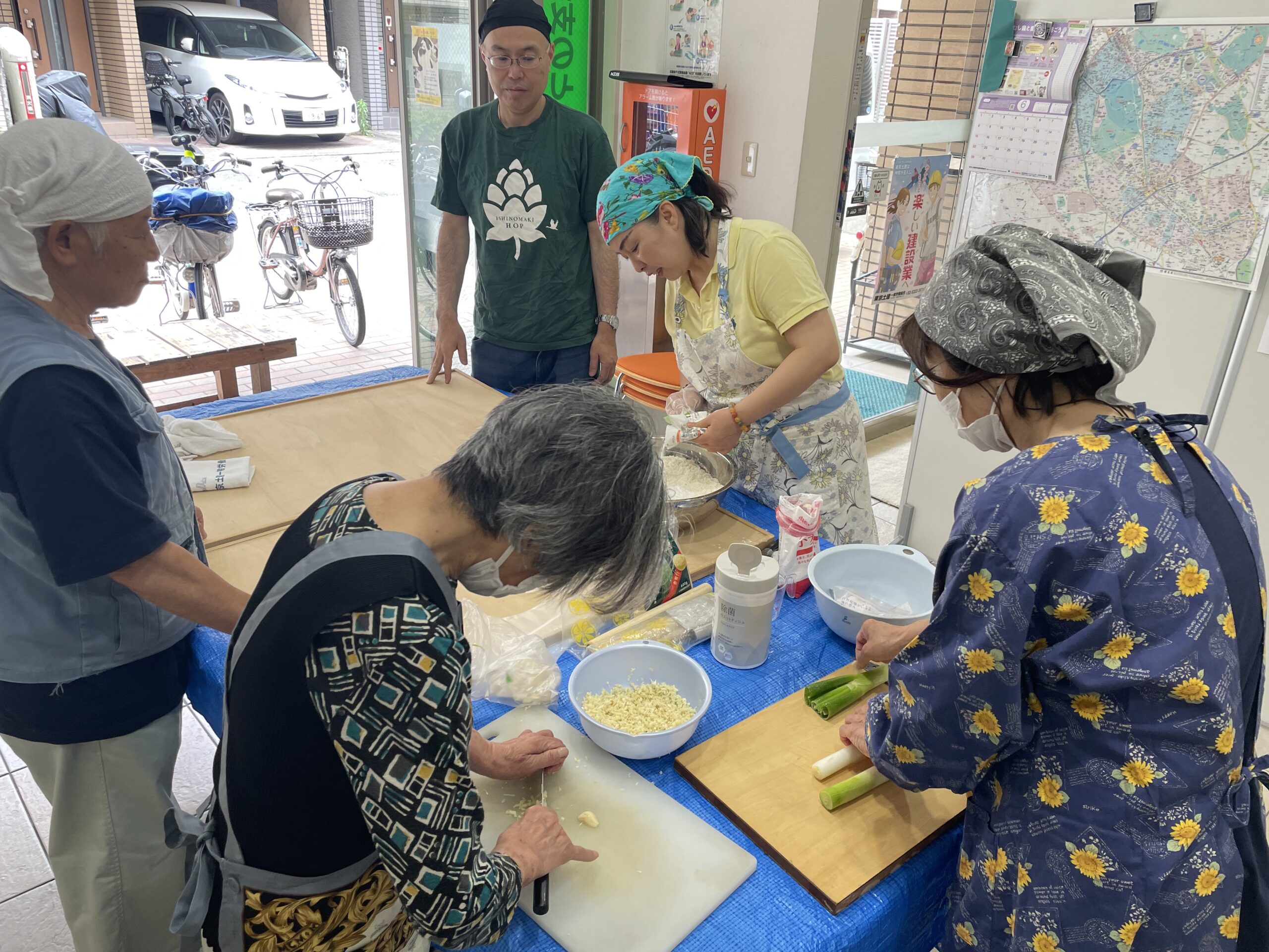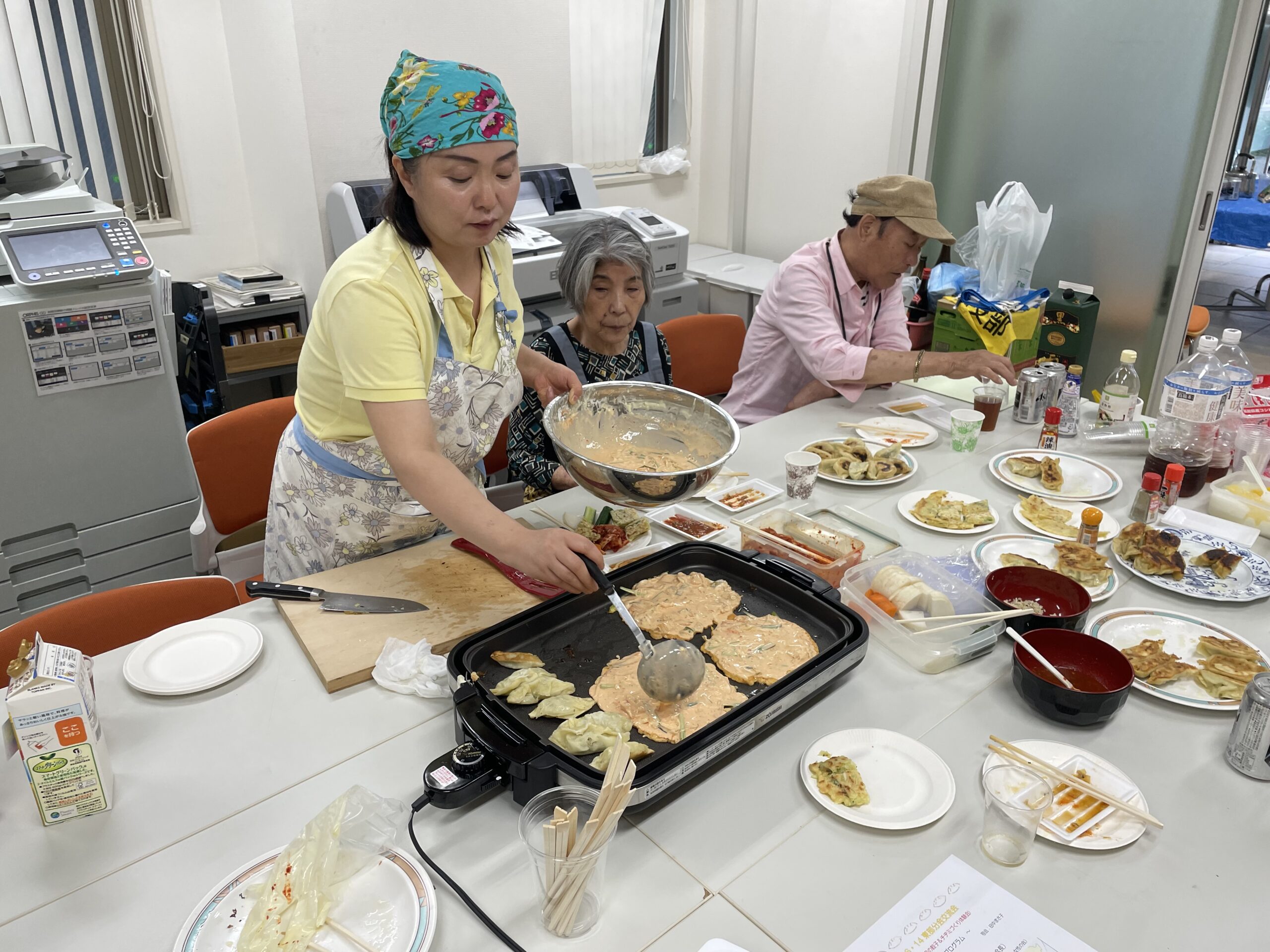 本場中国仕込みの須田さんの説明と指導をあおぎ何とかチヂミを作り上げました。