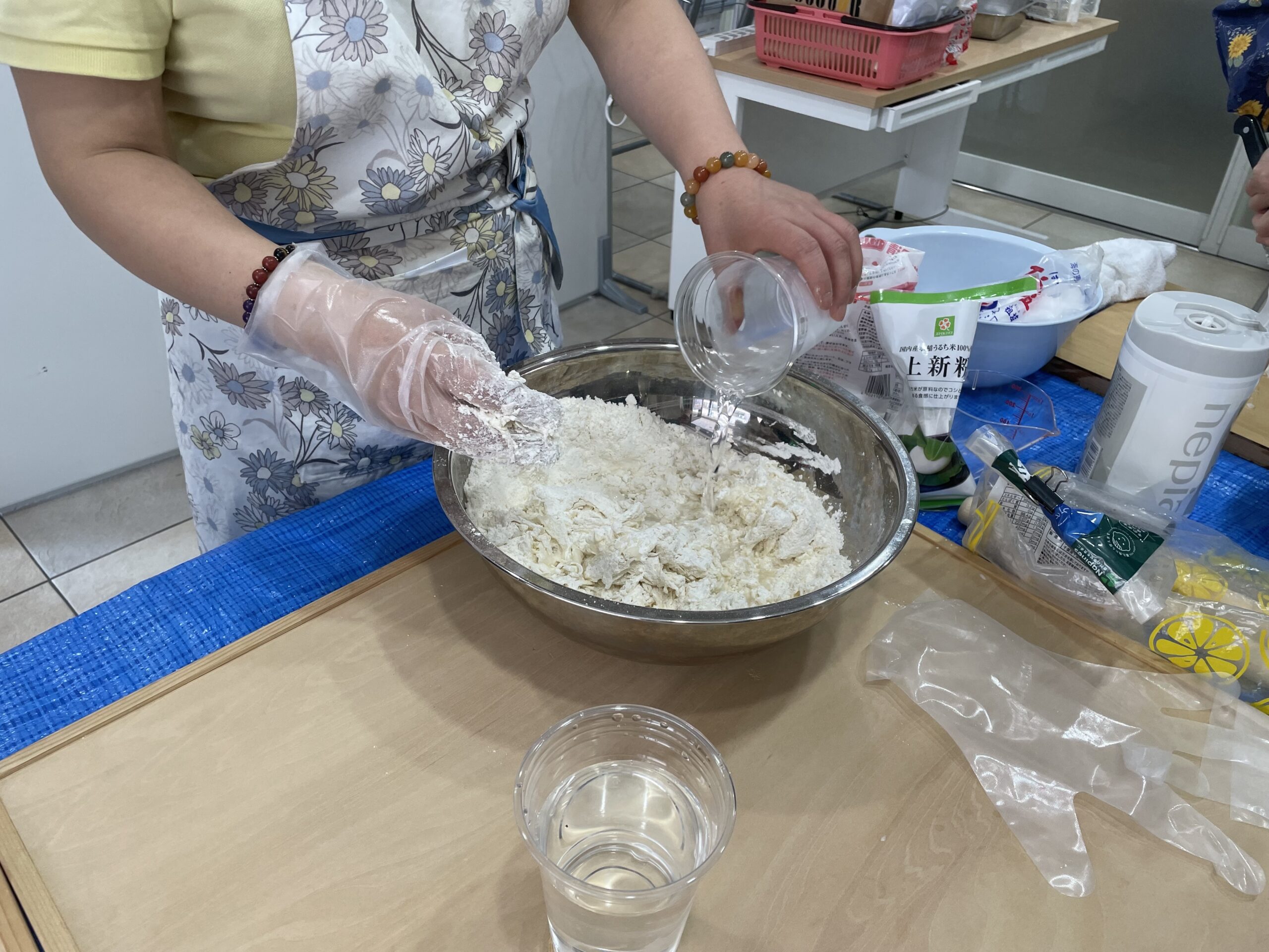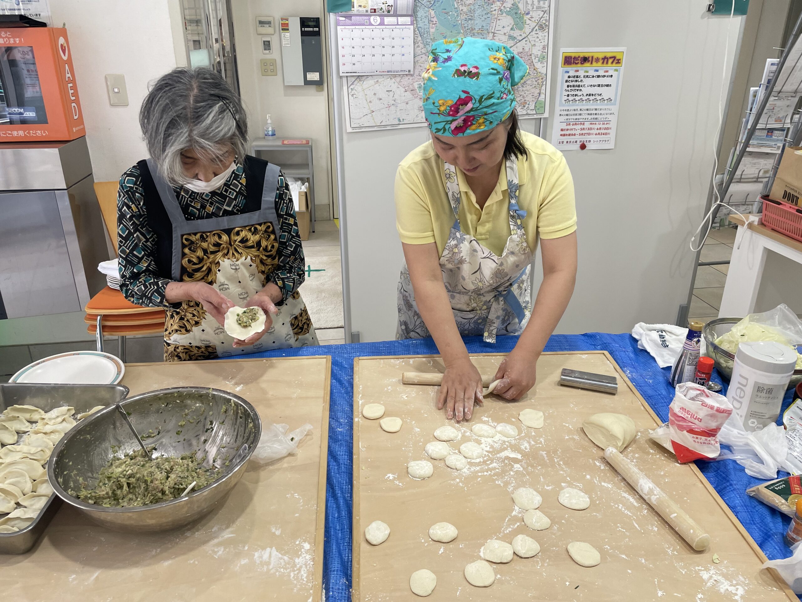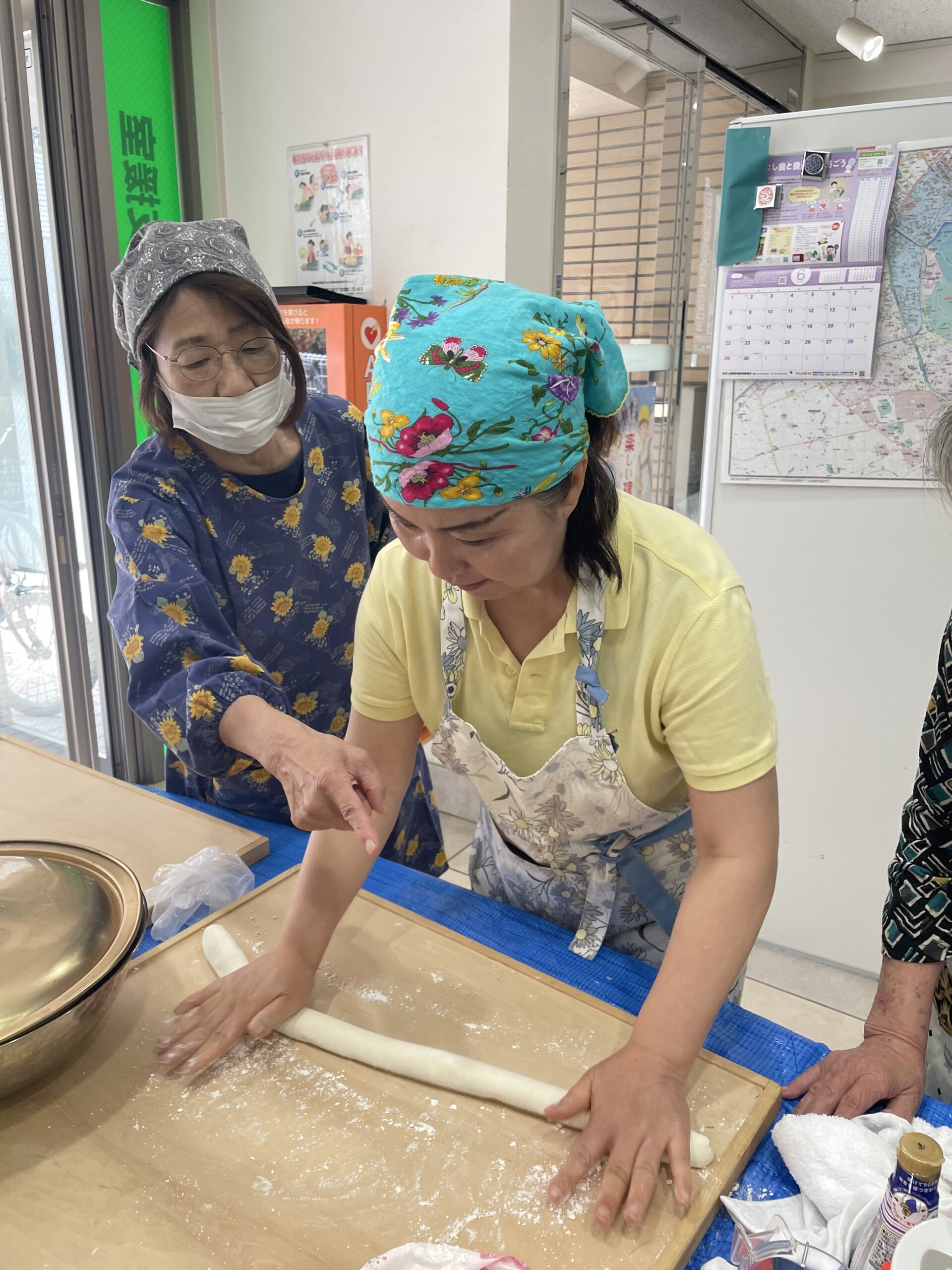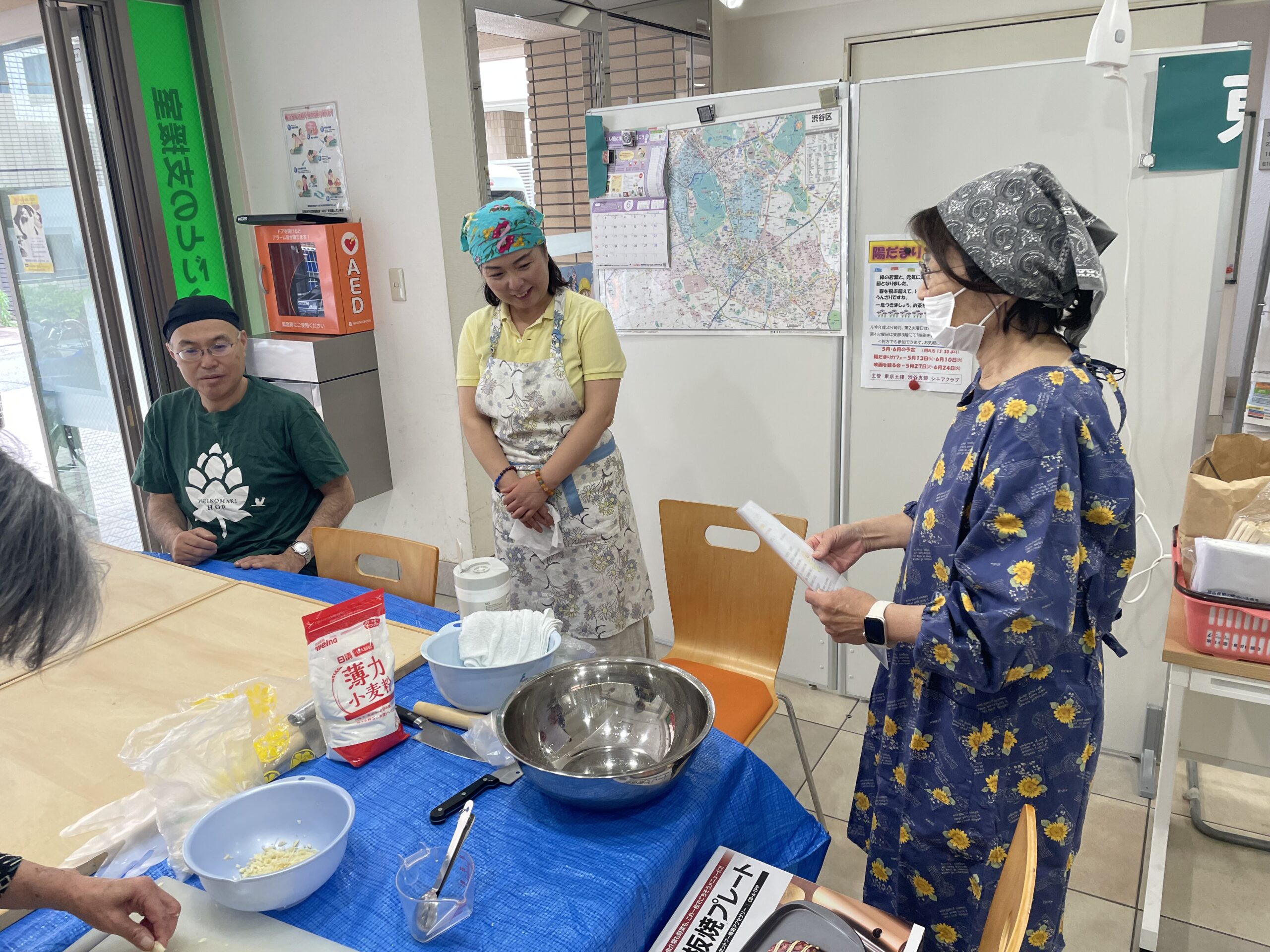 本場中国仕込みの須田さんの説明と指導をあおぎ何とかチヂミを作り上げました。