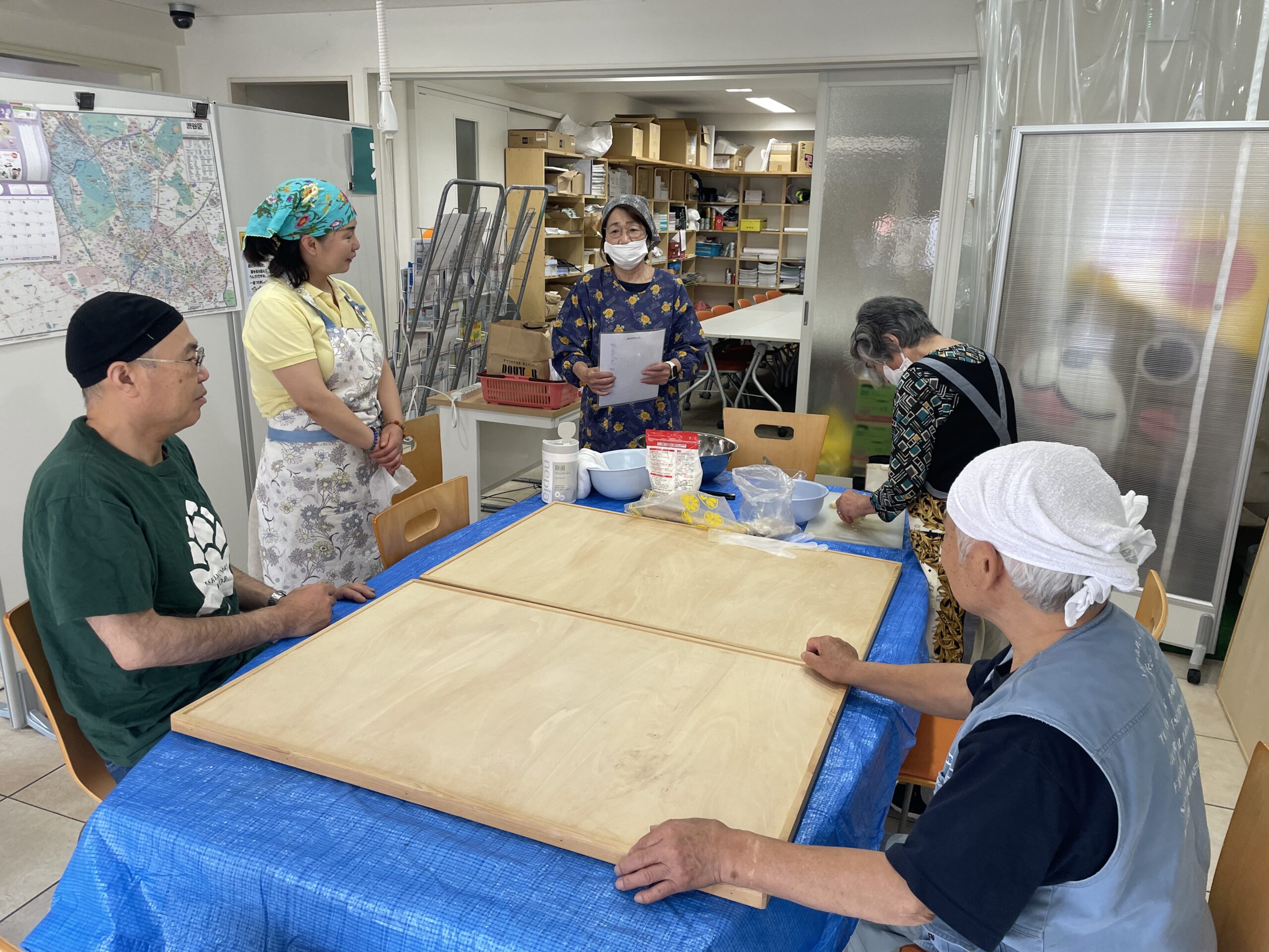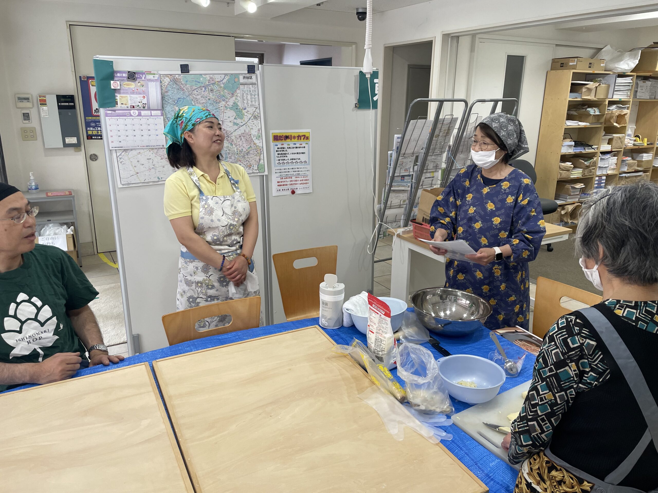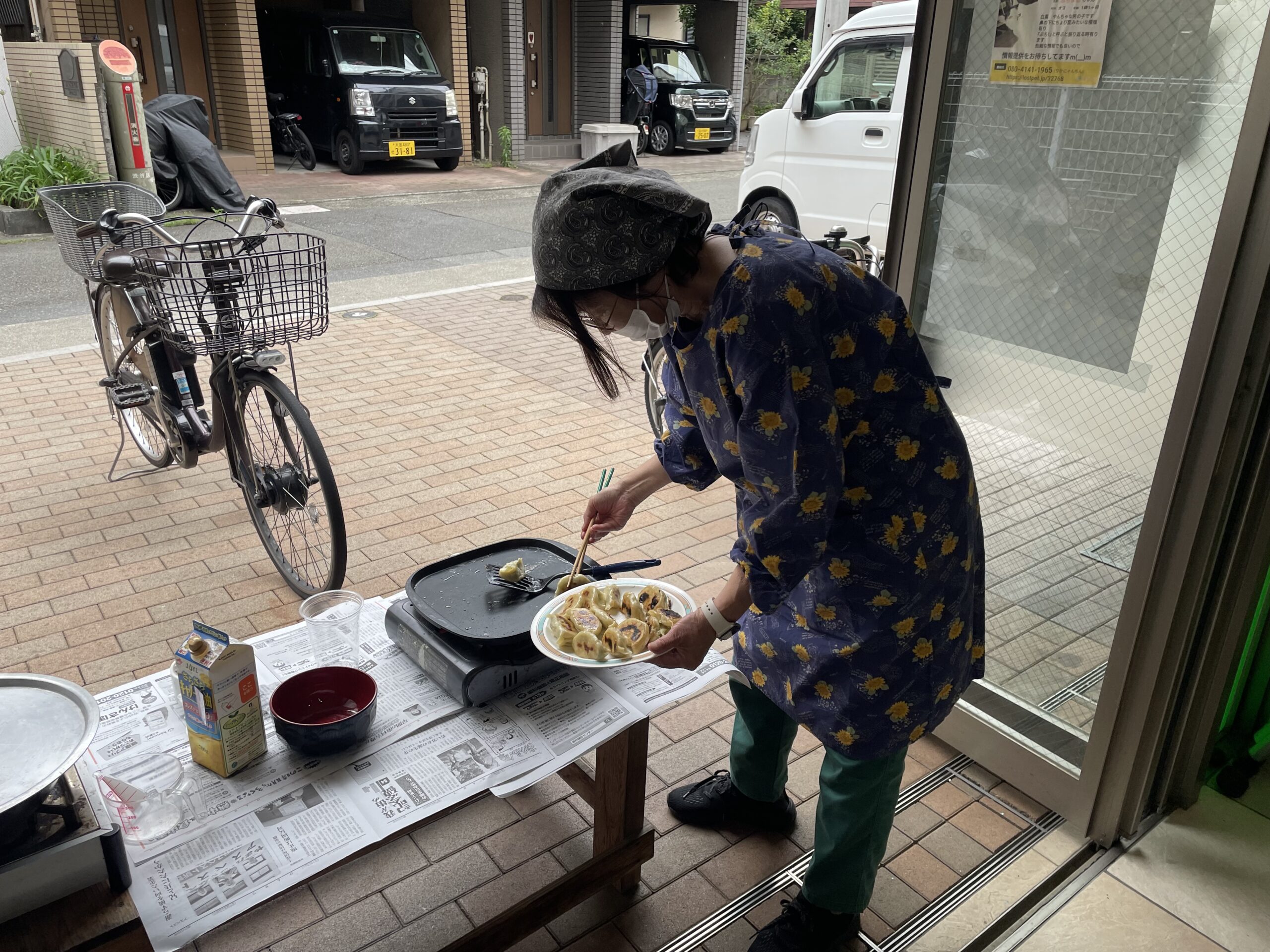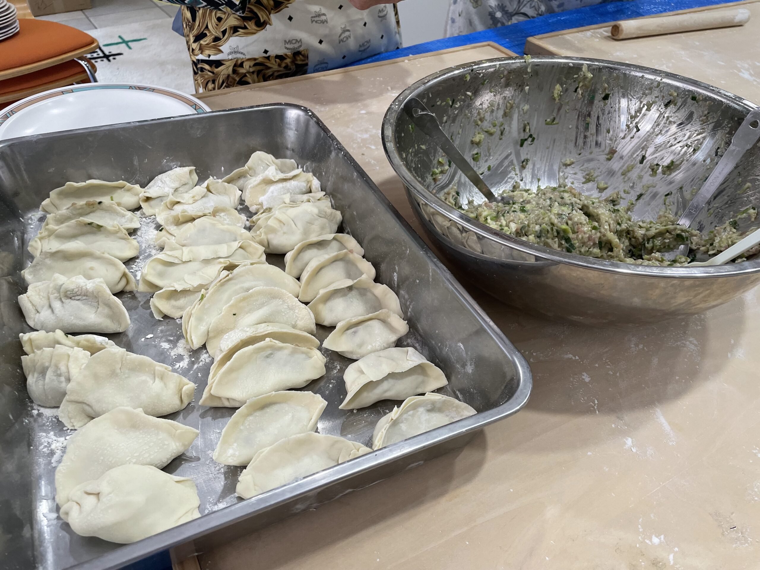 本場中国仕込みの須田さんの説明と指導をあおぎ何とかチヂミを作り上げました。