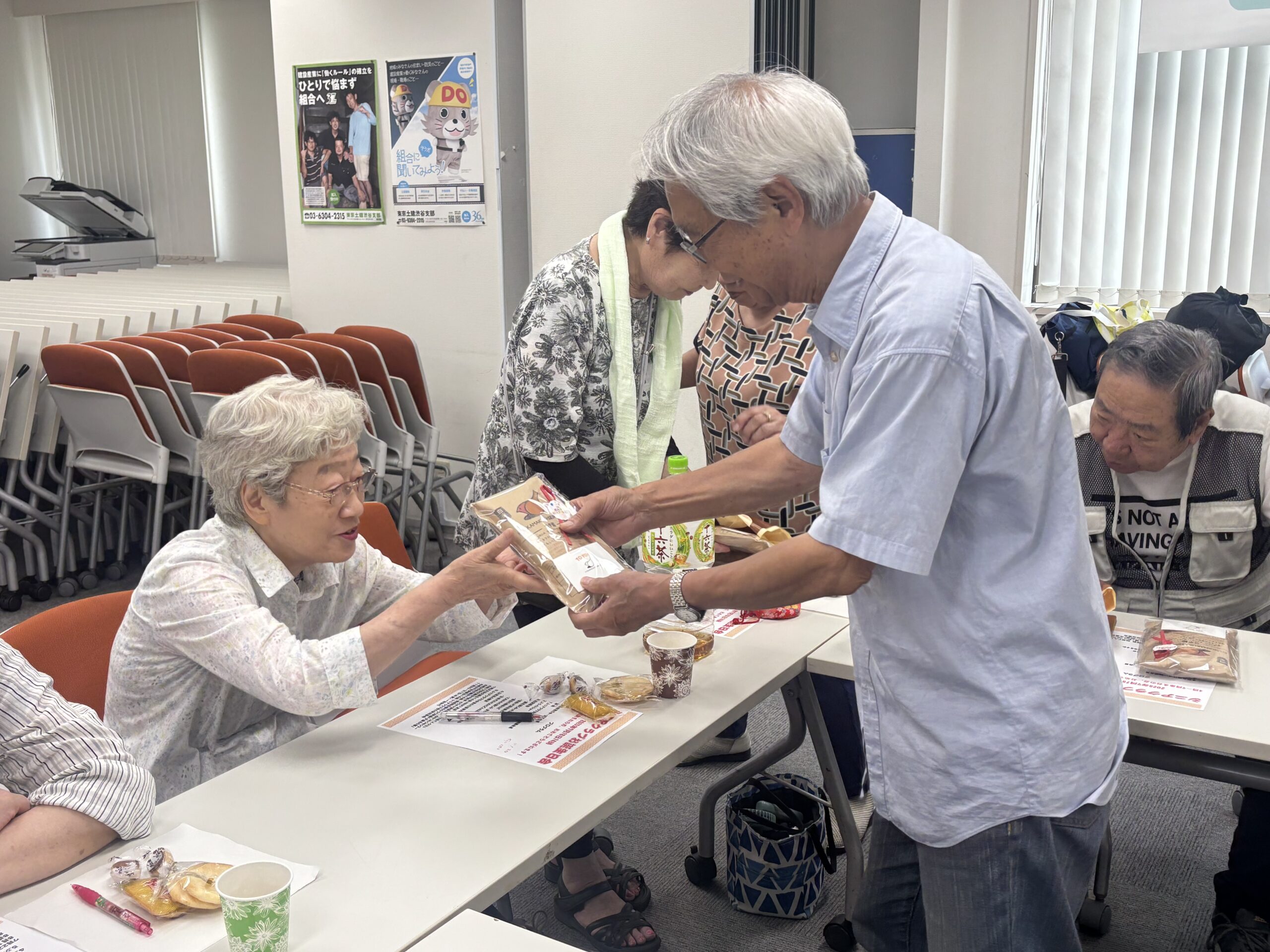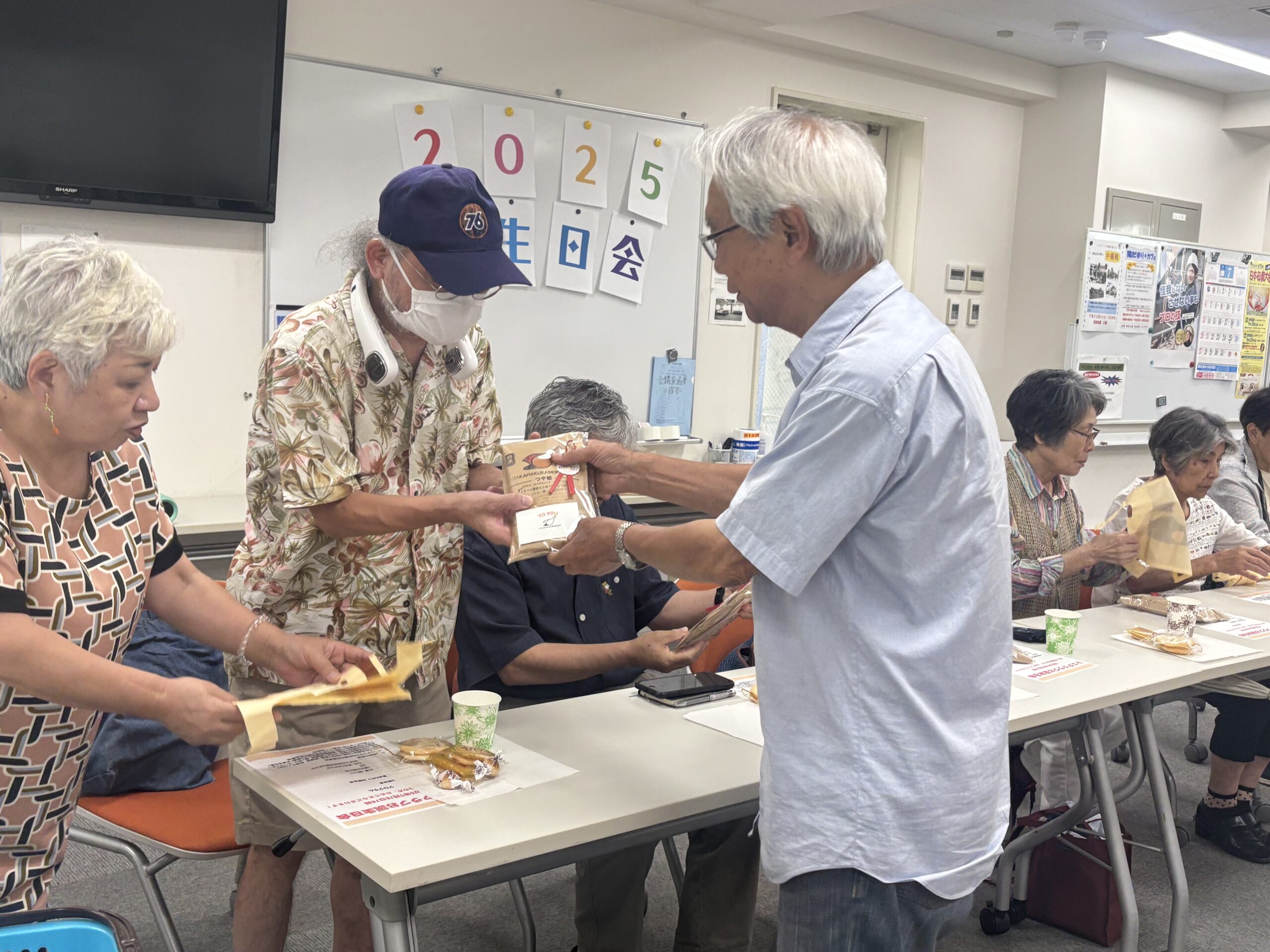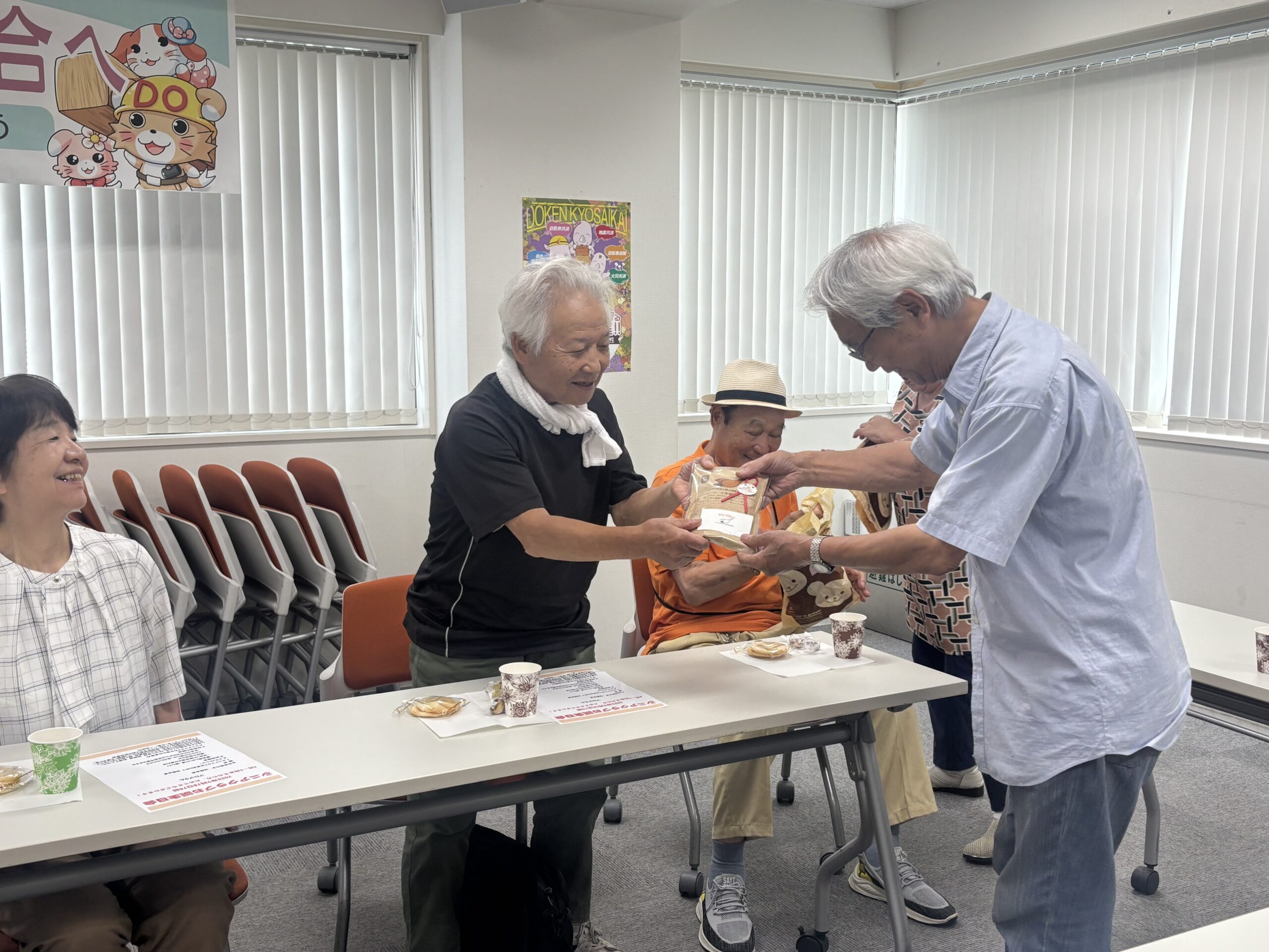 昨年度までは立派などら焼きとペットボトルのお茶、最後に美味しいお米をプレゼントしていましたが、予算ひっ迫のおり、ペーパーにお煎餅を並べ紙コップにお茶を注ぐという、涙ぐましくも可愛いパーティとなりました。