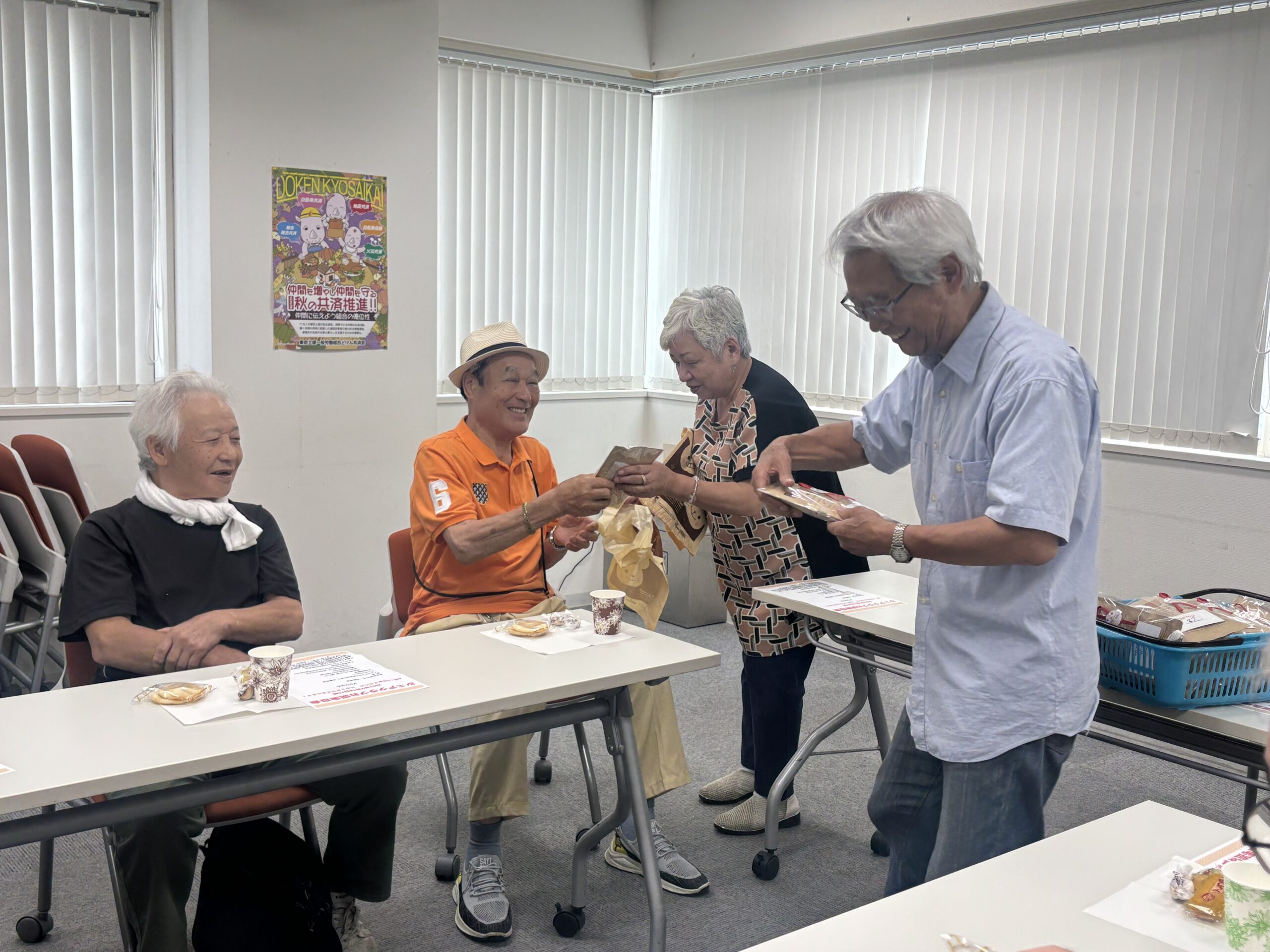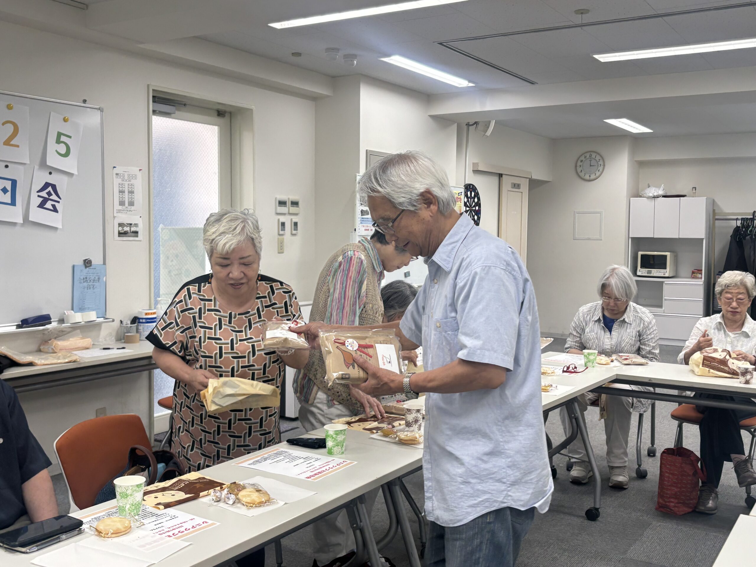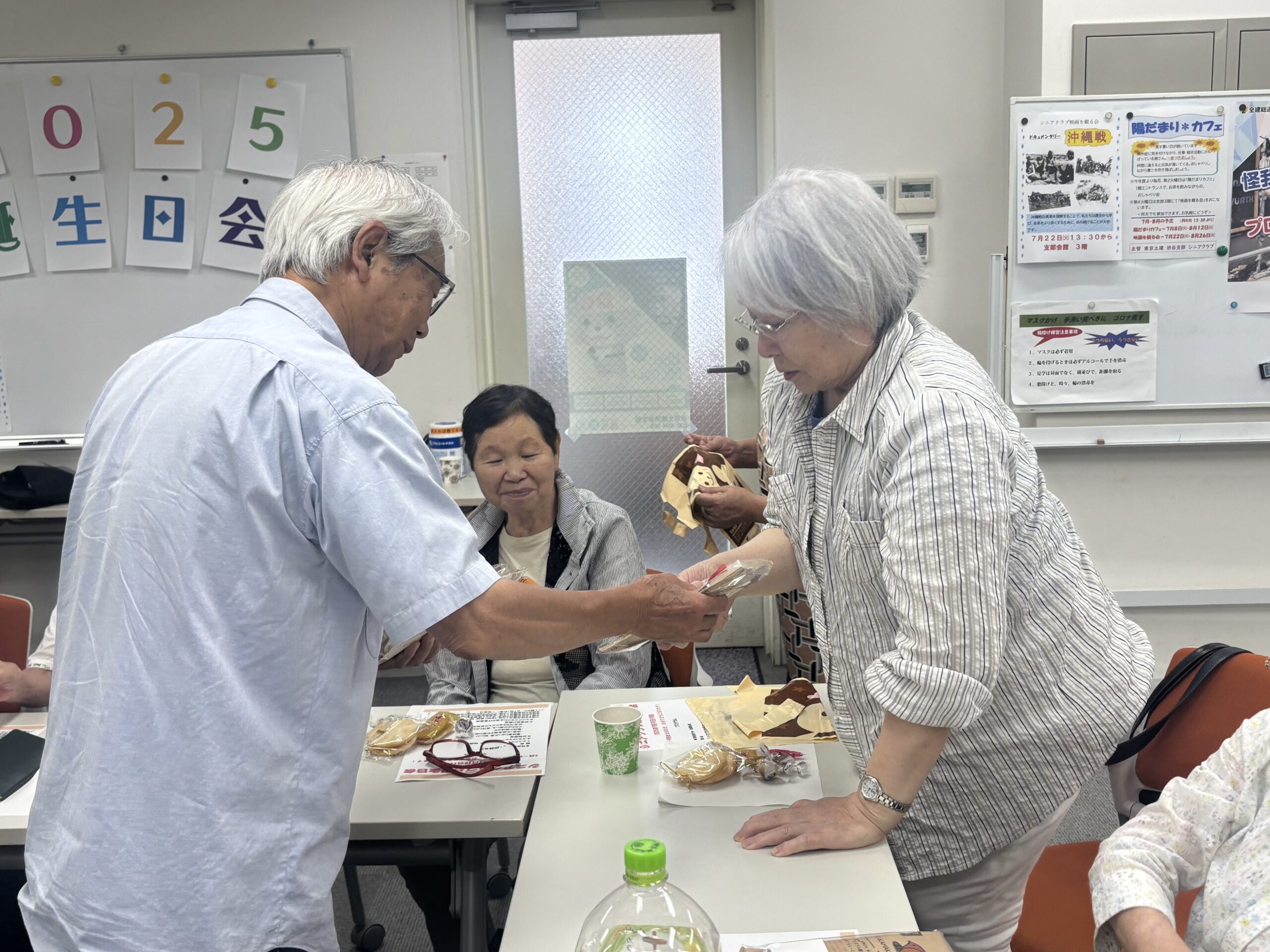 昨年度までは立派などら焼きとペットボトルのお茶、最後に美味しいお米をプレゼントしていましたが、予算ひっ迫のおり、ペーパーにお煎餅を並べ紙コップにお茶を注ぐという、涙ぐましくも可愛いパーティとなりました。