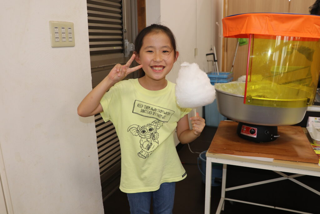 浜焼きも美味しく皆さん山盛りの海鮮を楽しみ、大人はビールでのどを潤して、子どもはわたあめを作って楽しみました。